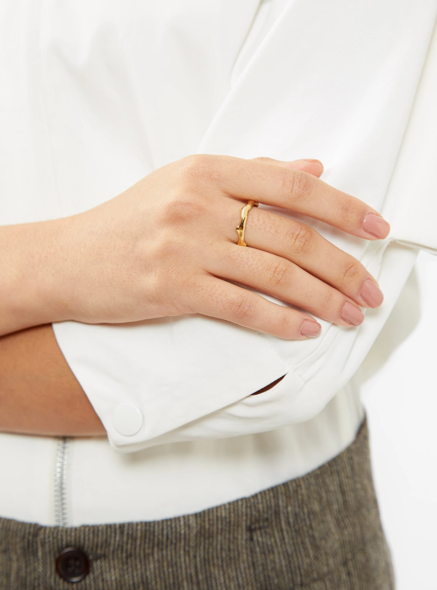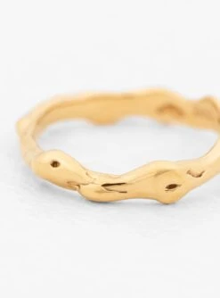 Informed by organic shapes, this Lava Band ring from Faris is made by hand from 14kt gold-plated bronze at the label’s Seattle studio.