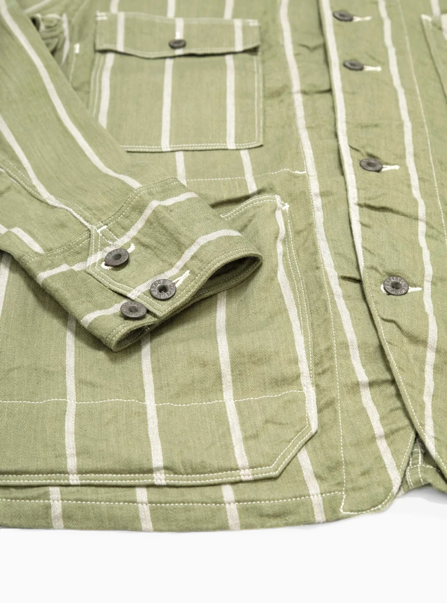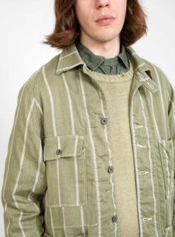 Kapital’s Phillies Stripe Coverall is crafted from a khaki linen and cotton blend fabric to a relaxed silhouette, and features a striped pattern in a contrasting white. It’s lightweight composition means that it can be worn in warmer climes.
