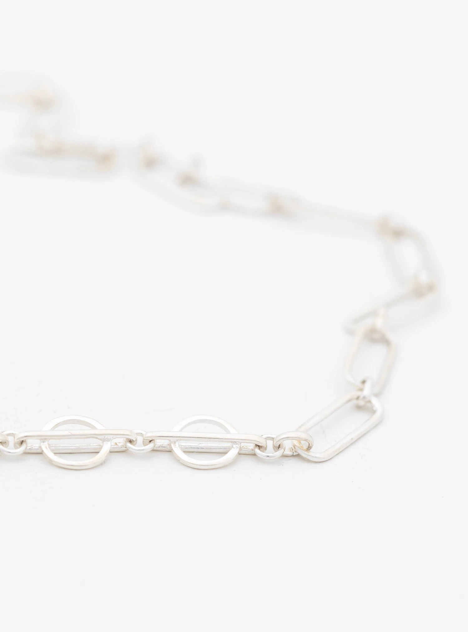 A reimagining of the monotonous paperclip chain, Helena Rohner combines two styles into one solid silver necklace. It is completed by a simple hoop lock and made in Spain.Â