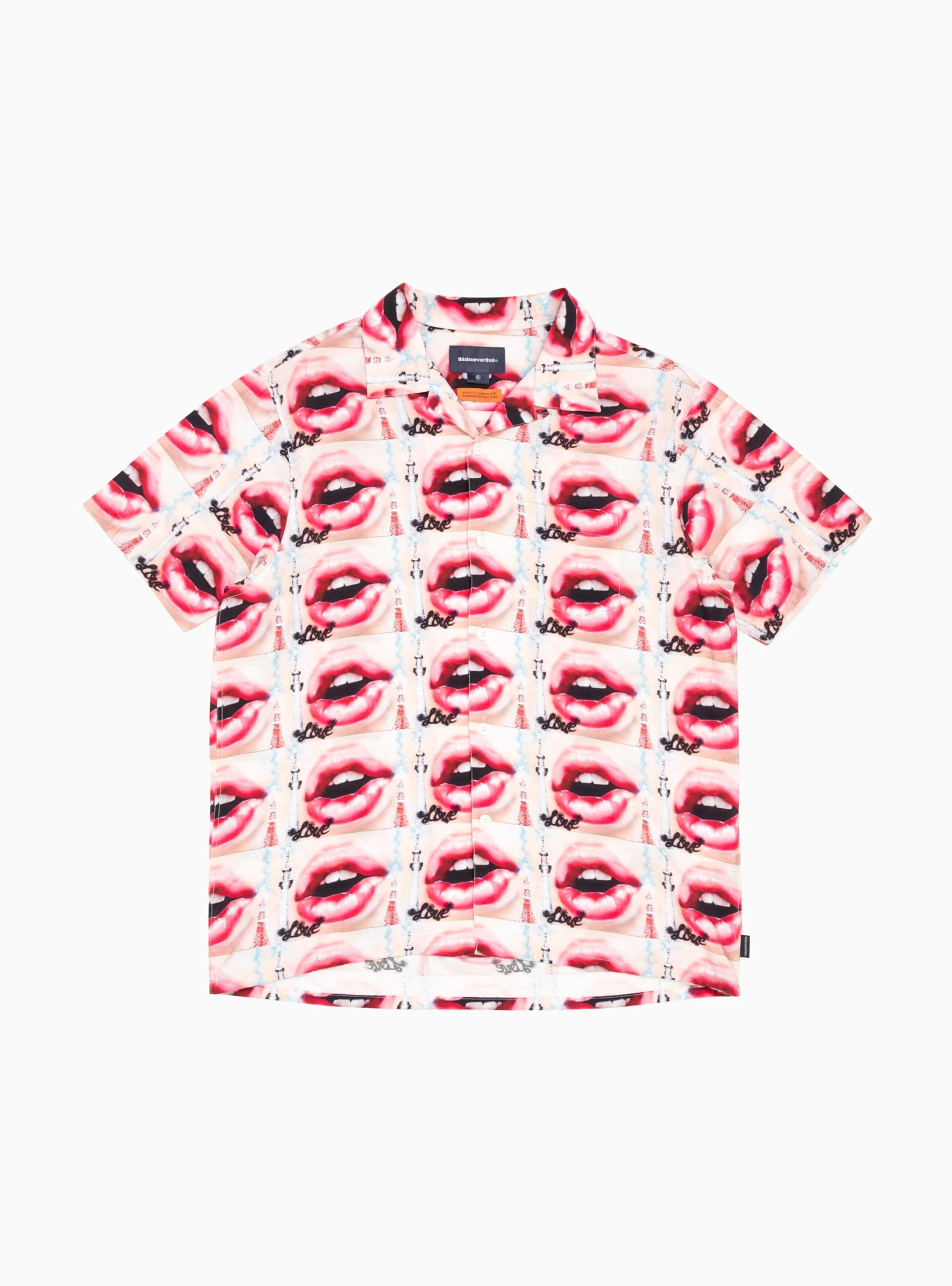 Featuring original artwork by Ryota Daimon, this pink Lips-print shirt from thisisneverthat is cut to a relaxed silhouette with dropped shoulders and a two-way spread collar.