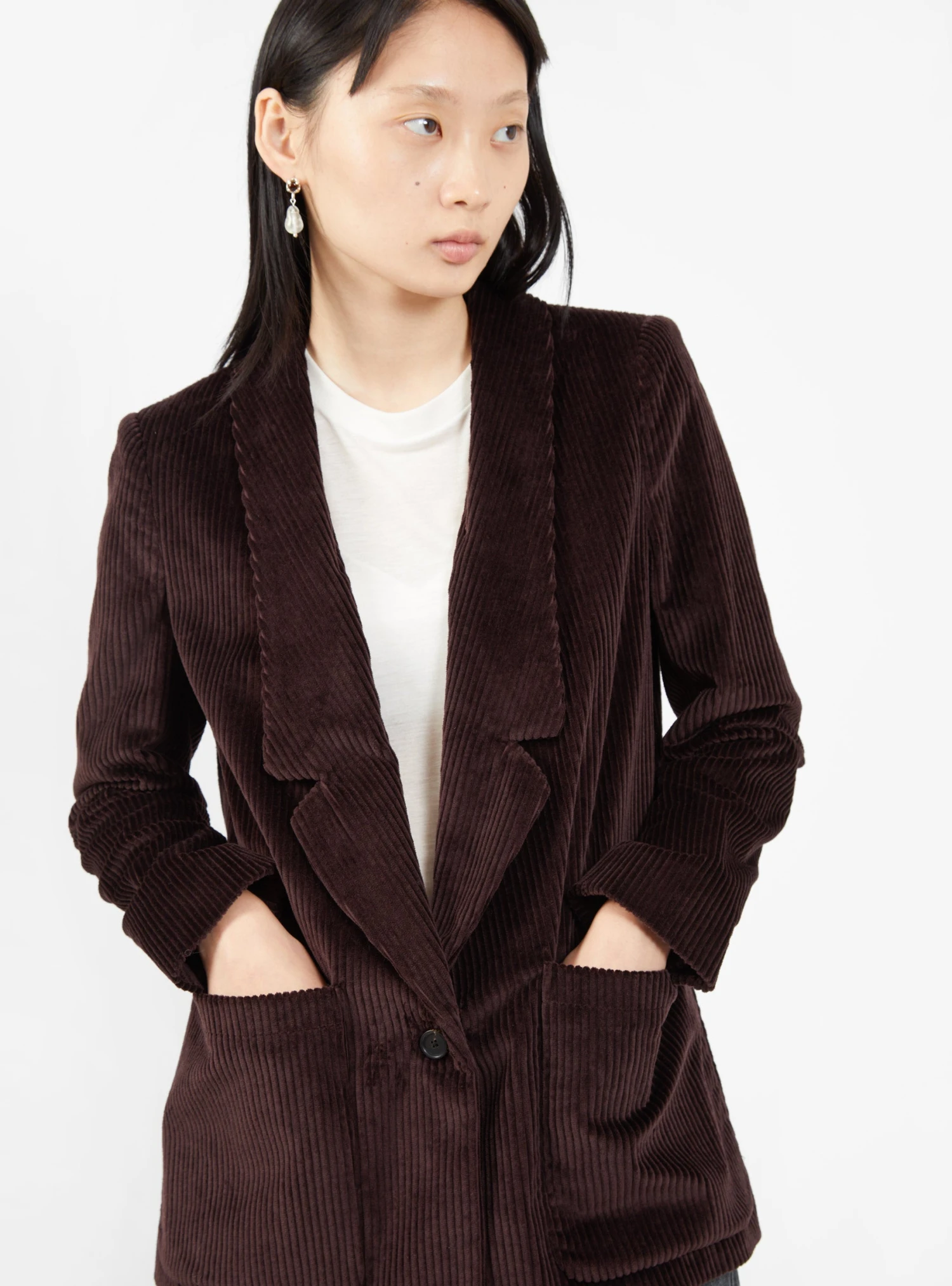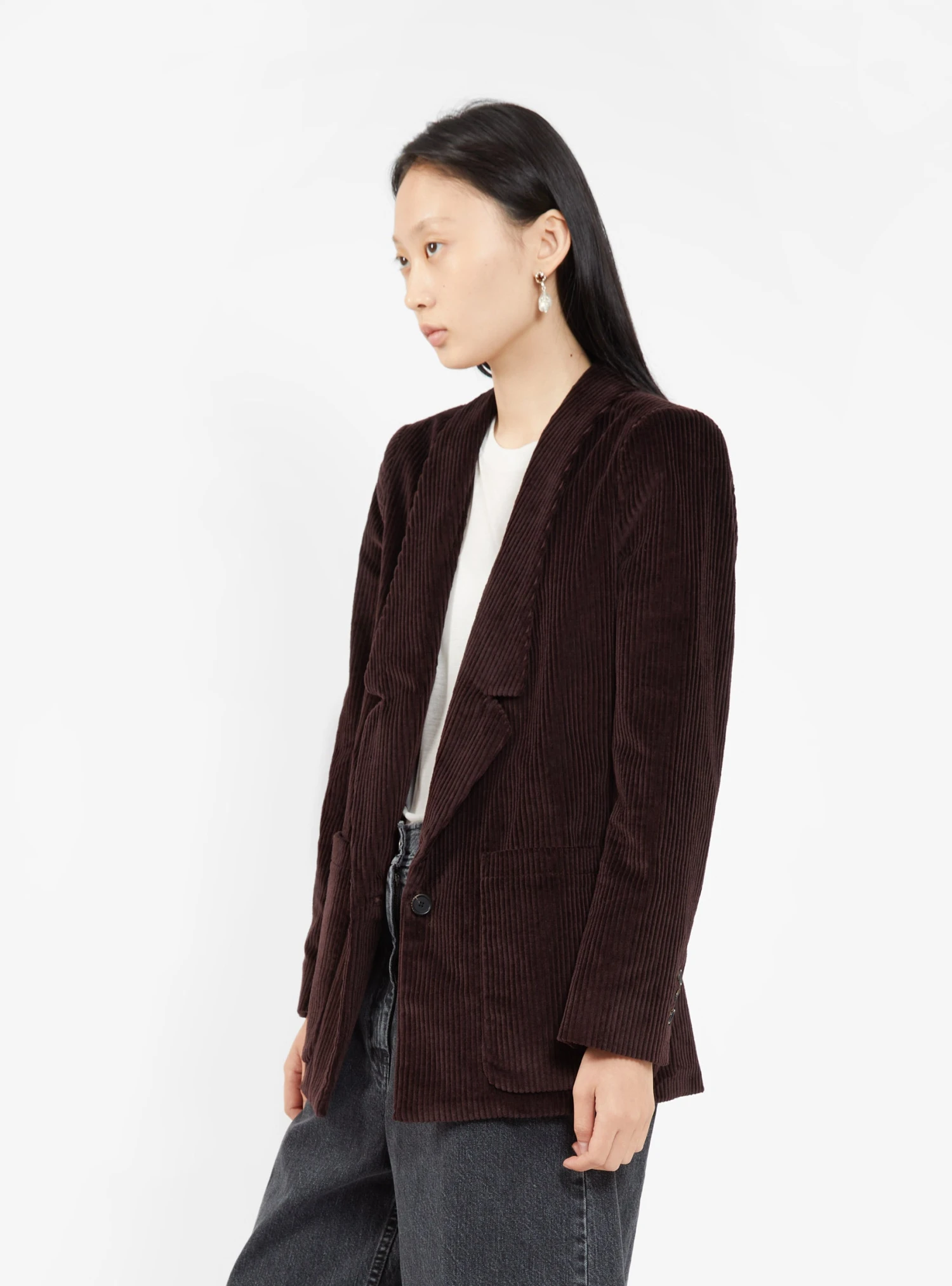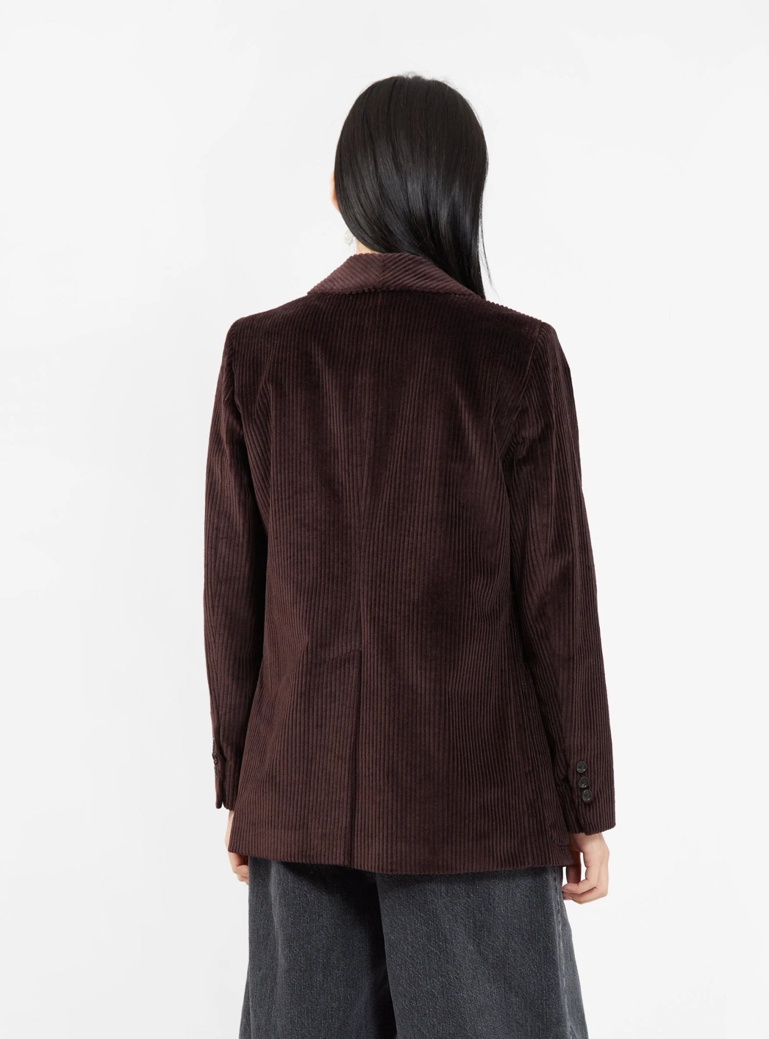 This espresso-brown Loveless jacket from Rachel Comey can be styled as an autumnal outerwear layer or as a blazer when paired with matching trousers. Made in the USA from Italian Wide Wale cotton corduroy, itβs cut to a straight silhouette with notch lapels and patch pockets.