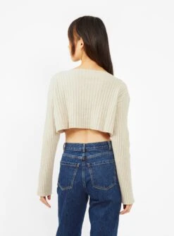 This sand Macau cardigan is made out of 100% merino wool. It features a boat neck and dropped shoulders, wear it buttoned up or down as the perfect layer to any outfit.