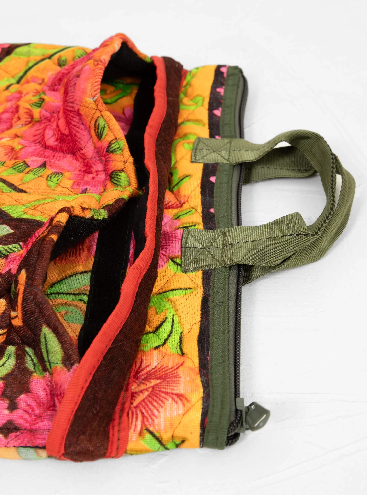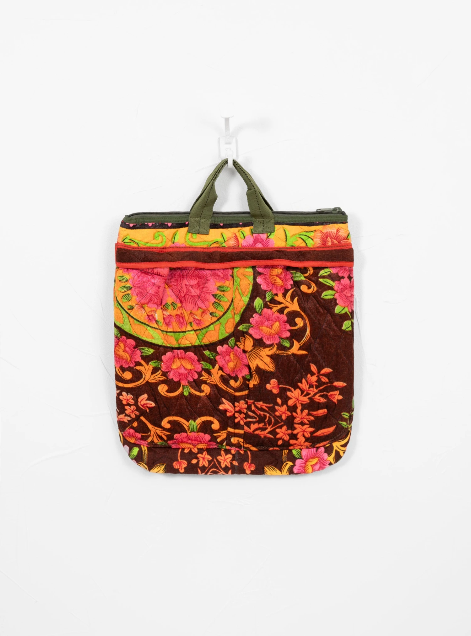 The Mao Helmet Bag by Japanese brand PUEBCO is crafted from recycled fabric that has been quilted and distributed in India for bedding. Coming in a soft brown with flora detailing, the spacious tote has a zip fastening, short handles and a velcro front pocket.