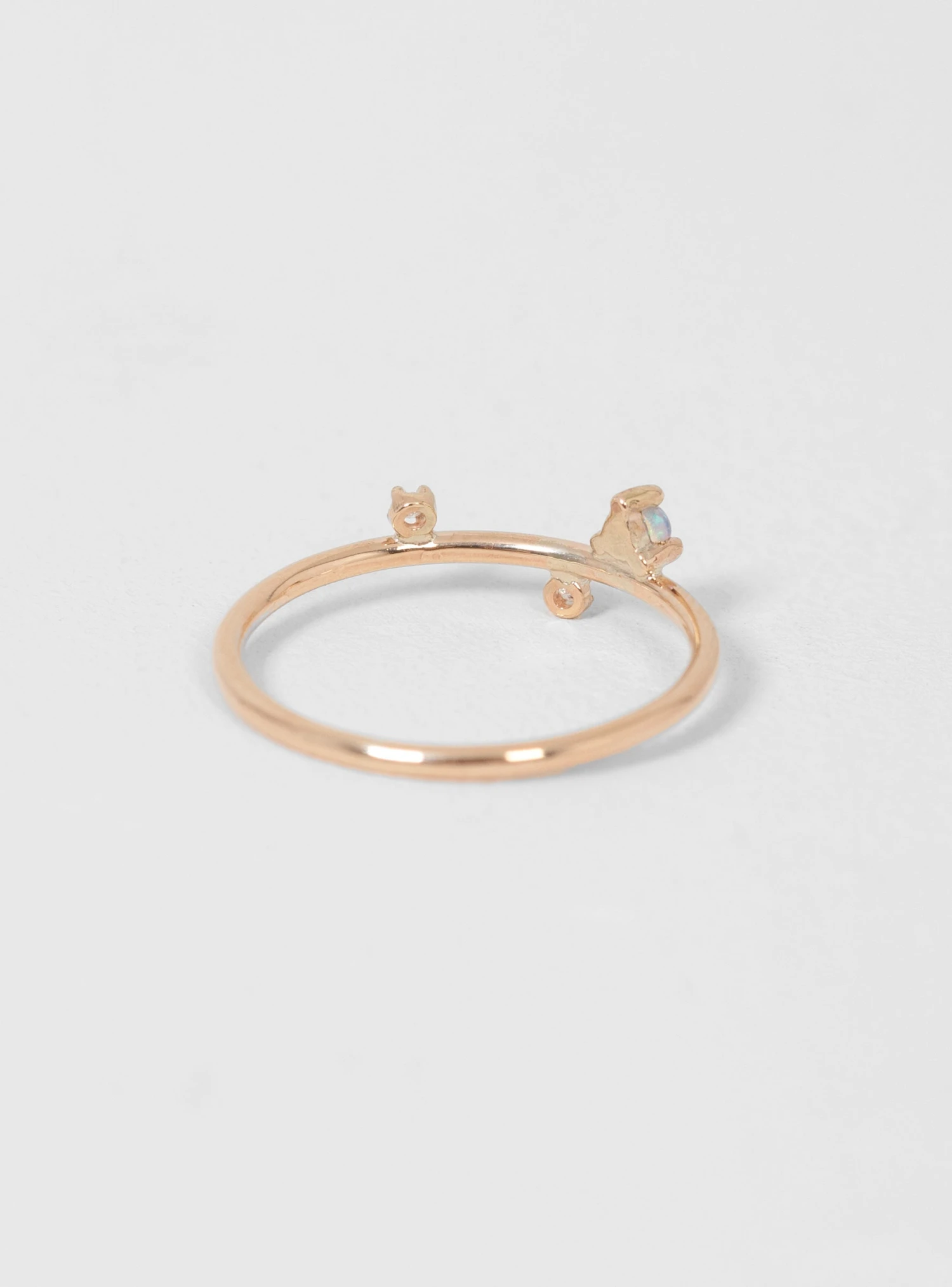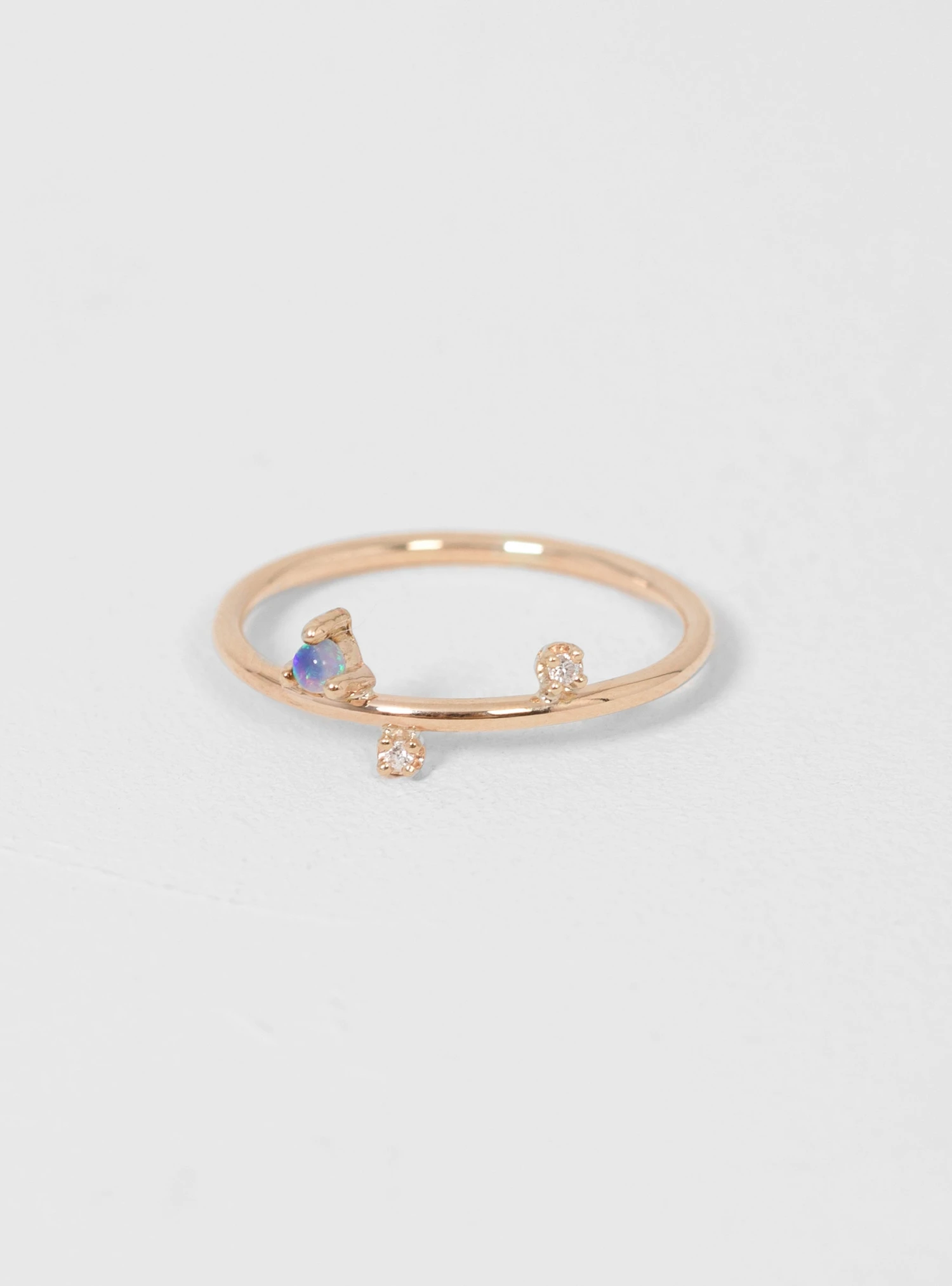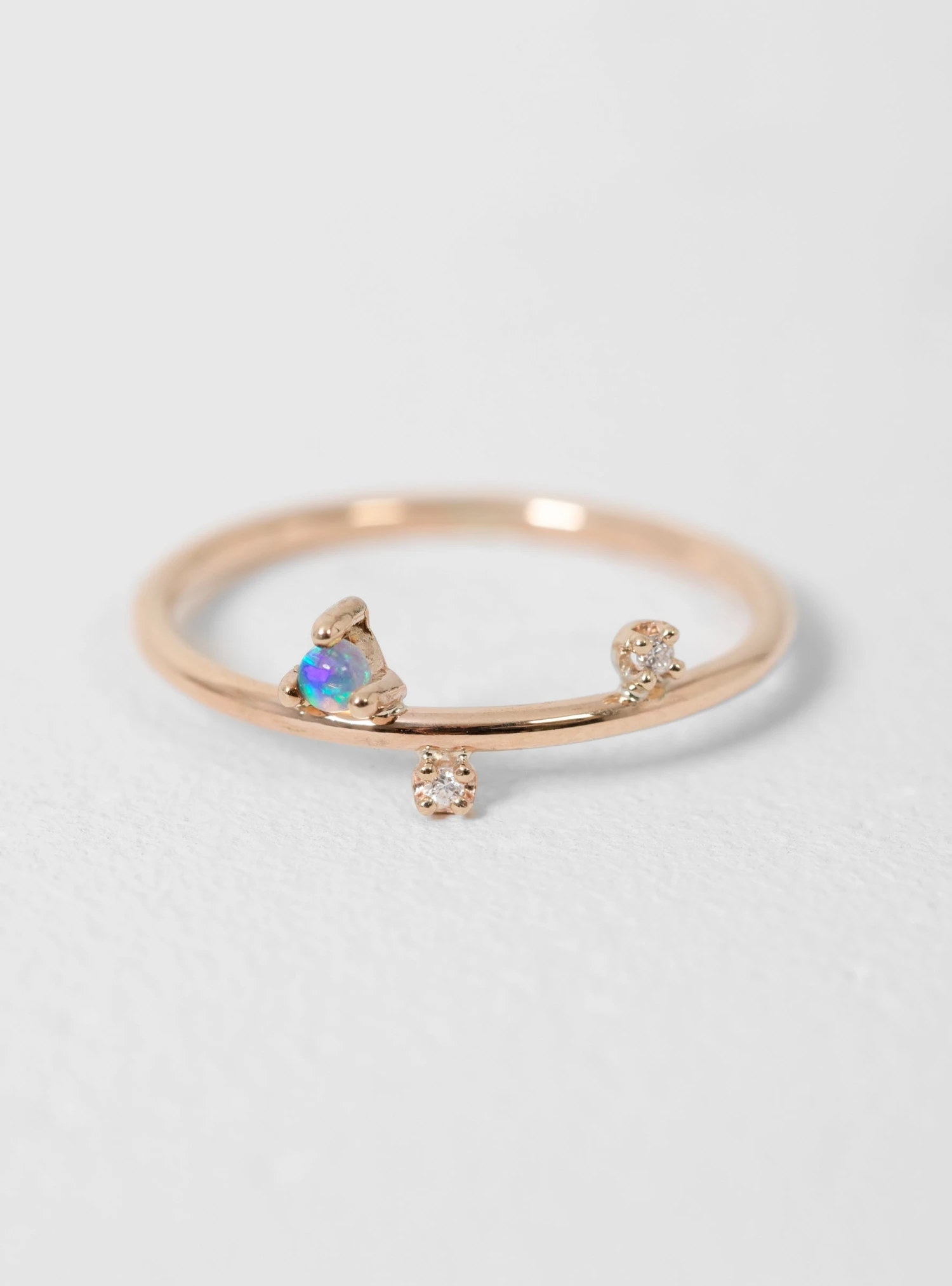 A nod to one of the label’s classics, this Mini Three-Step ring from Wwake is inspired by the delicate details that may sometimes go unnoticed in life. Made in New York from 10kt gold, it’s embellished with a spherical opal, as well as two shimmering white diamonds.