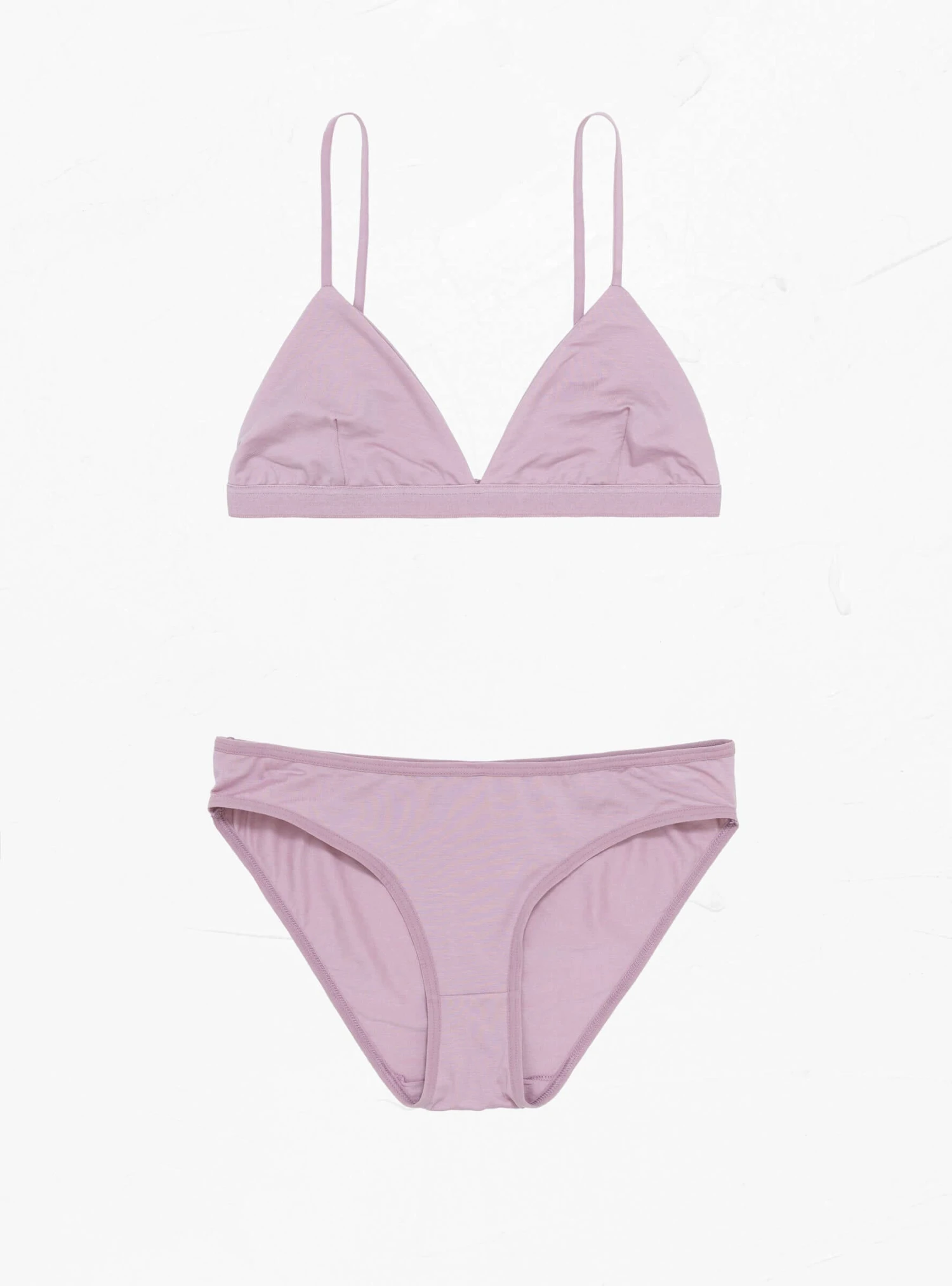 Made in Portugal from bamboo lyocell-blend jersey, which incorporates an element of stretch for added comfort, this Still Purple Mississippi bra from Baserange features thin, adjustable straps and an elasticated underband for added support.