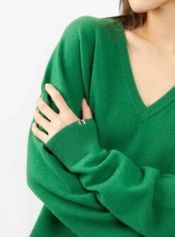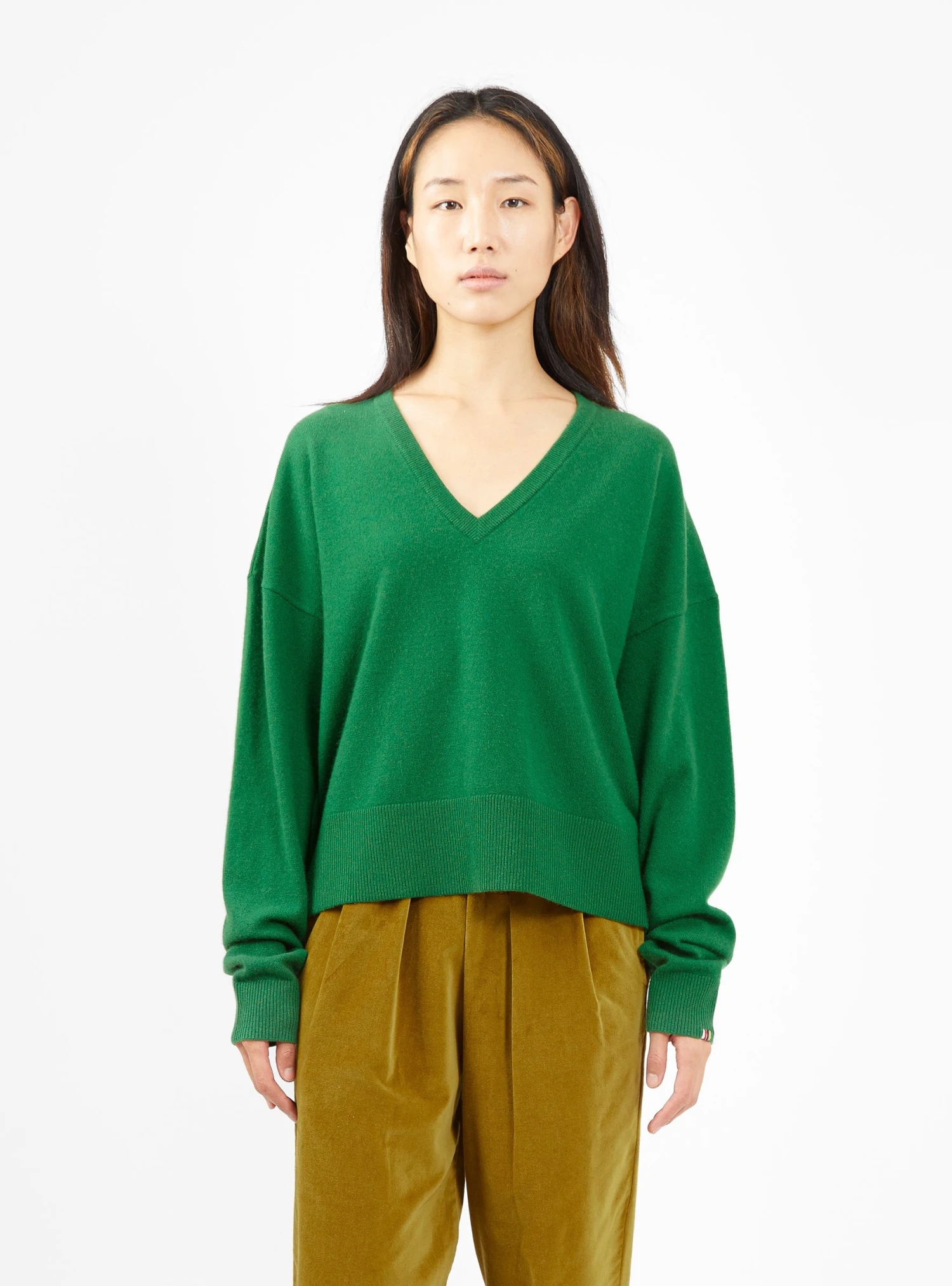 Made from ultra-soft cashmere-blend yarn, this weed-green N°224 Clash sweater from Extreme Cashmere is knitted to a relaxed silhouette with a V-neck, dropped shoulders and ribbed edges.