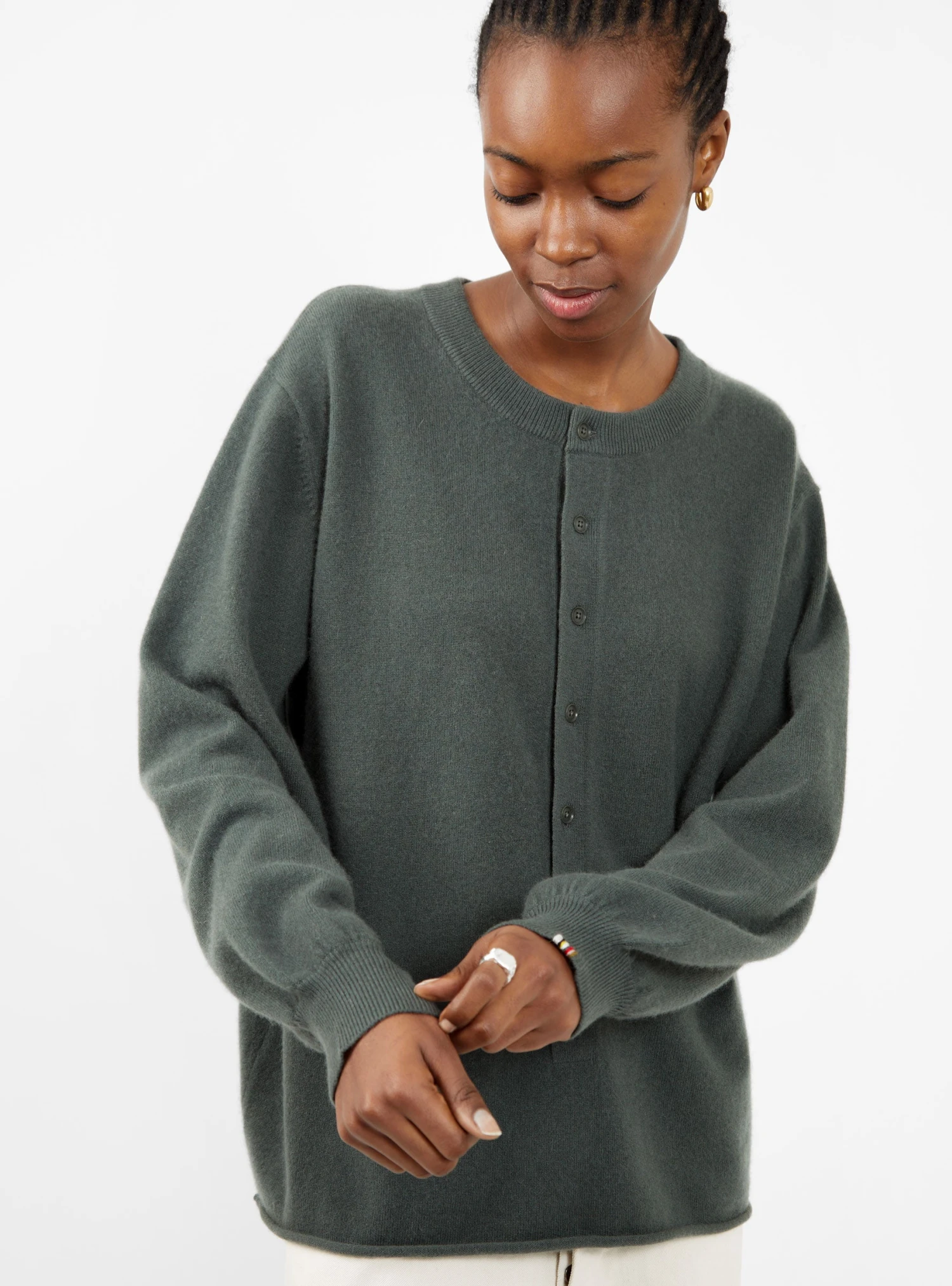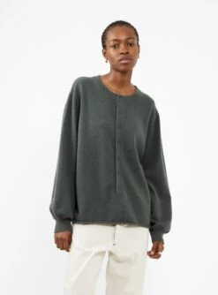 Made from cashmere-blend yarn, which incorporates a touch of stretch for added comfort, this lake-grey n°280 Bi sweater from Extreme Cashmere is knitted to an oversized silhouette with dropped shoulders and a three-quarter button fastening.