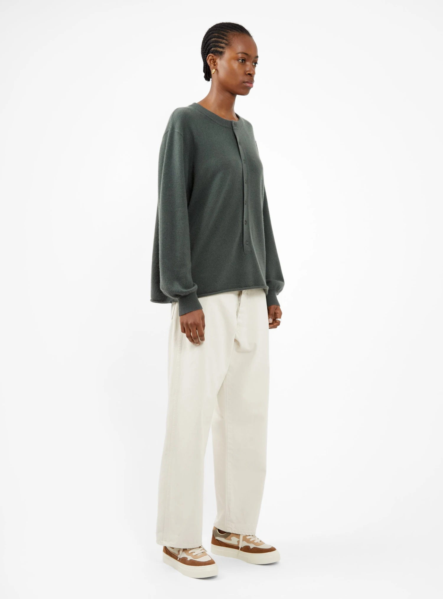 - Three-quarter button fastening