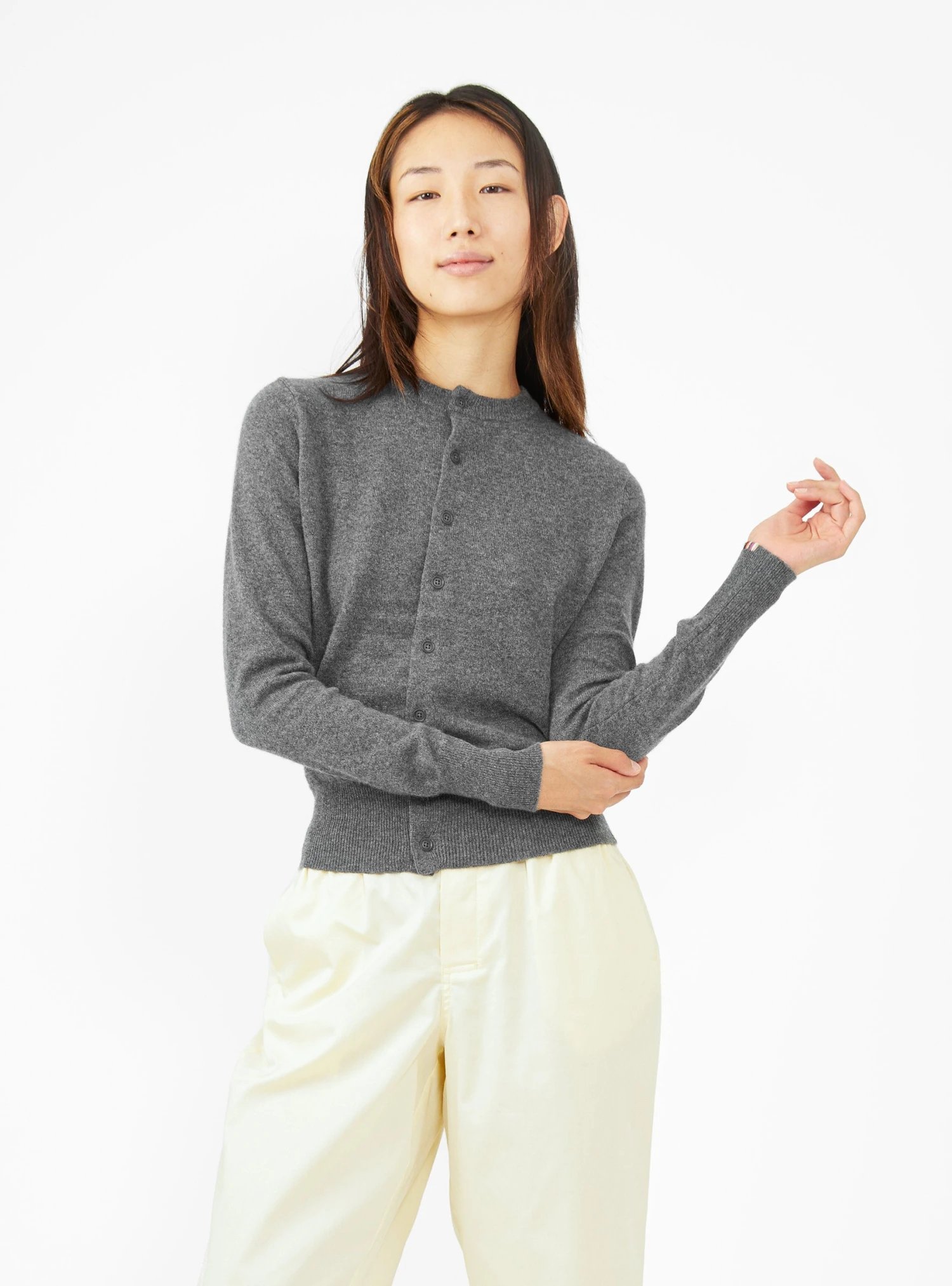 Made from ultra-soft cashmere yarn, this grey N°300 Little 2 cardigan from Extreme Cashmere is knitted to a classic-fit silhouette with a round neck and ribbed edges.