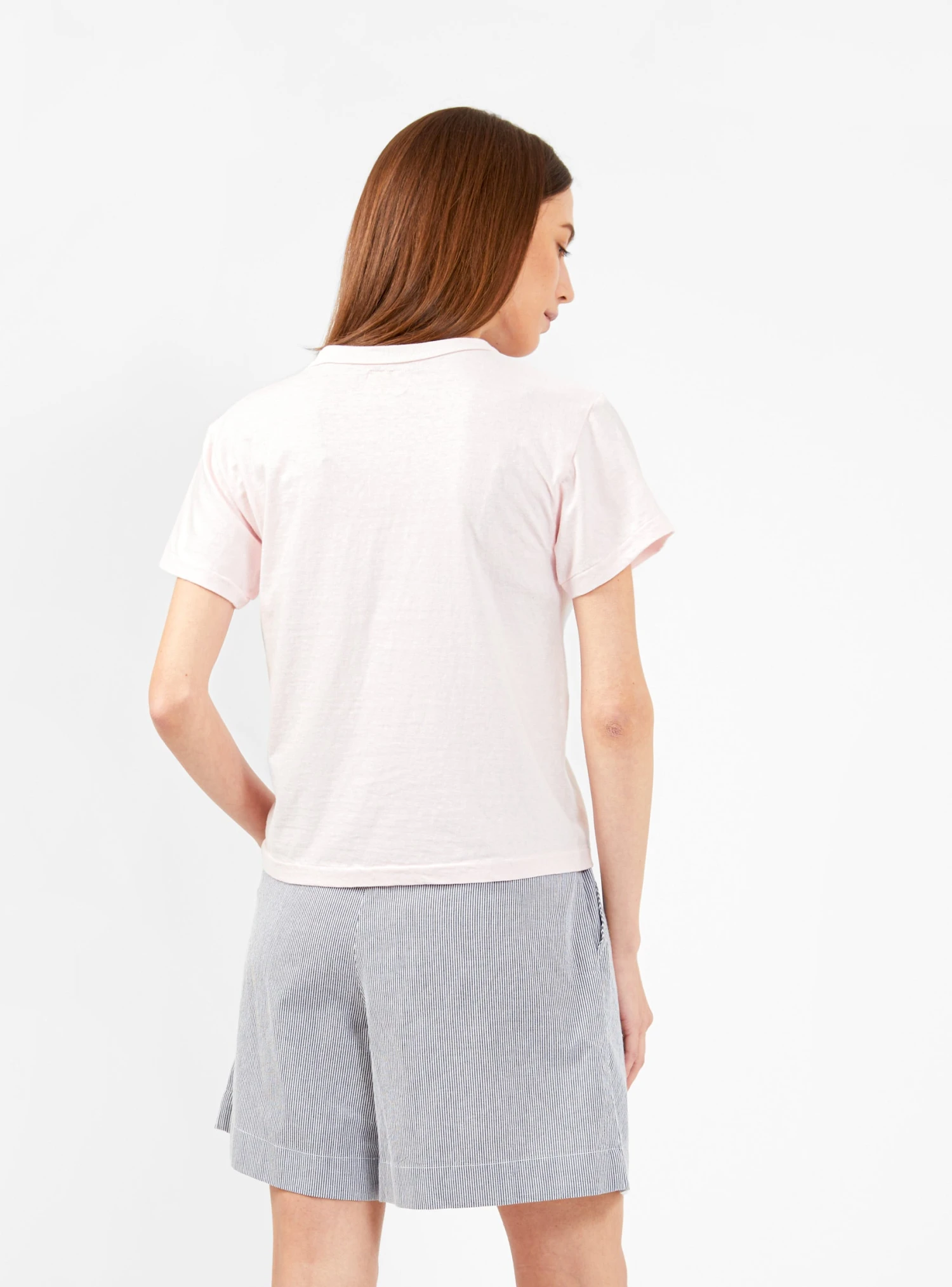 This barely pink Naamakoh T-shirt is constructed using Sunray’s antique circular knitting machine to create a shape without the need for side seams. Made in Japan from heavyweight cotton jersey, it’s cut to a classic, slightly boxy silhouette with a ribbed crewneck.
