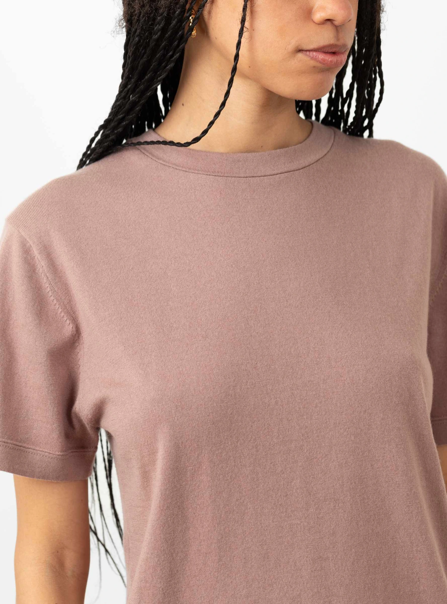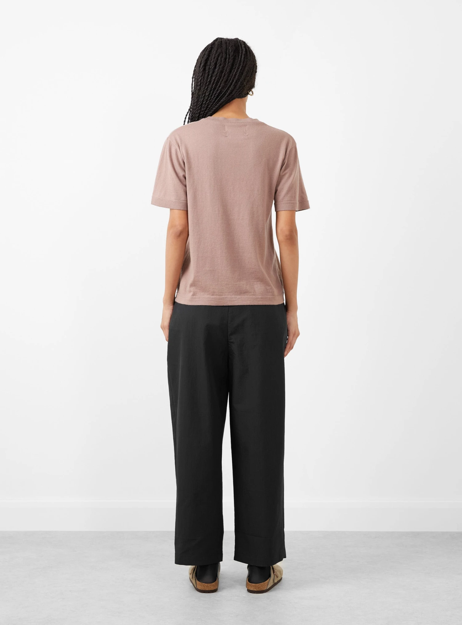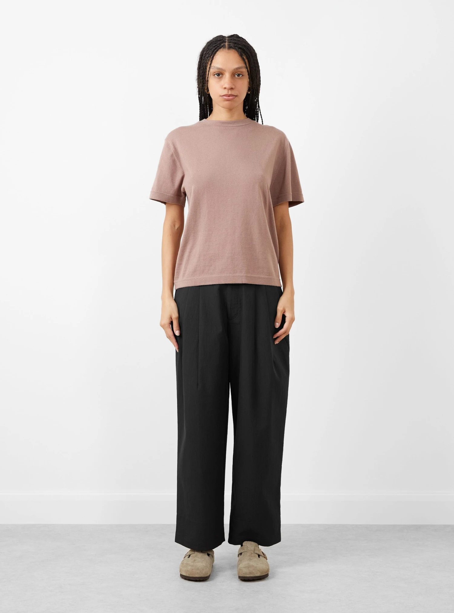The No.268 Cuba Top from Extreme Cashmere comes in a warm clay colourway. Cut from a cotton and cashmere blend, the top is finished with a crewneck and ribbed trims.