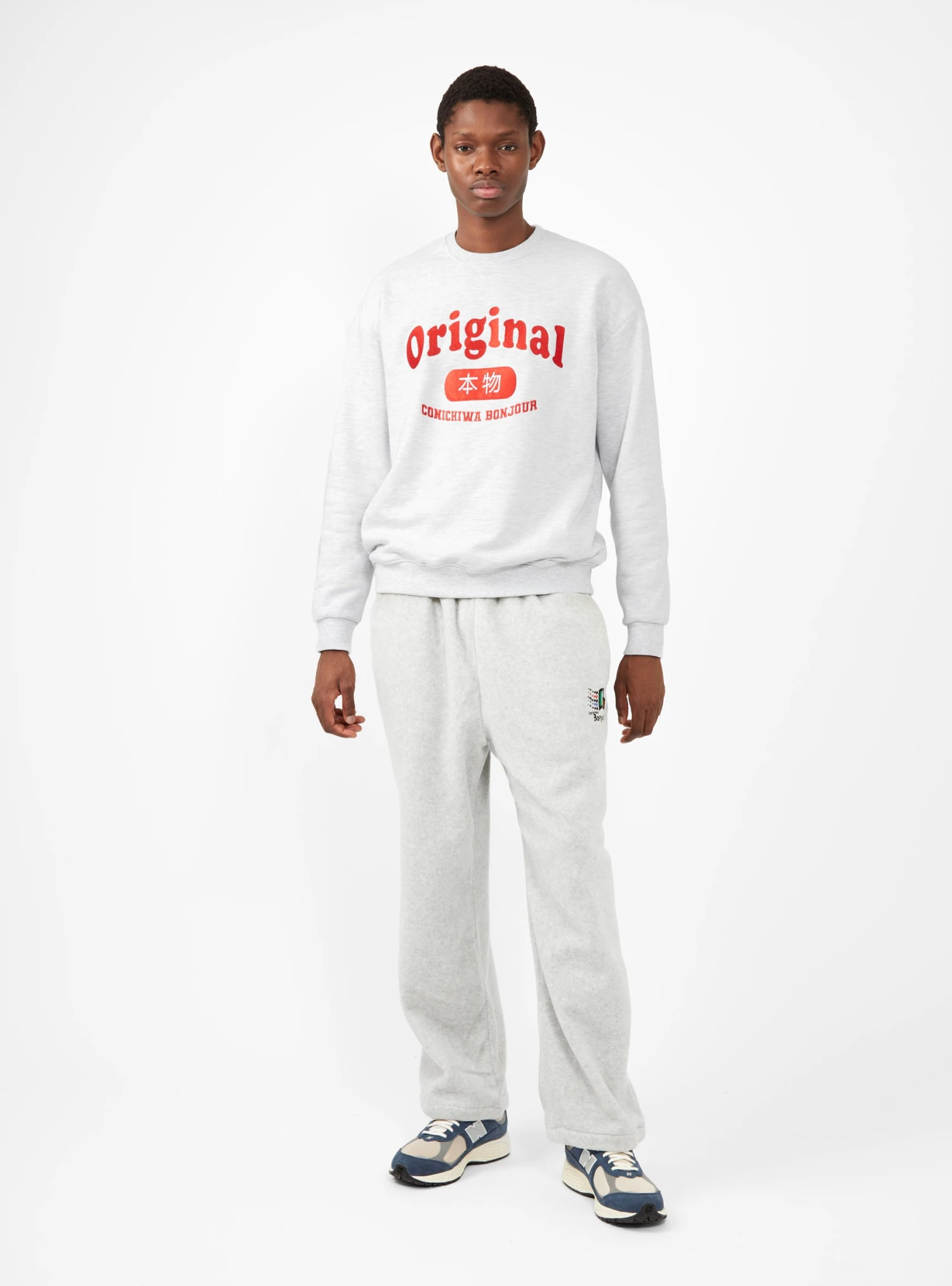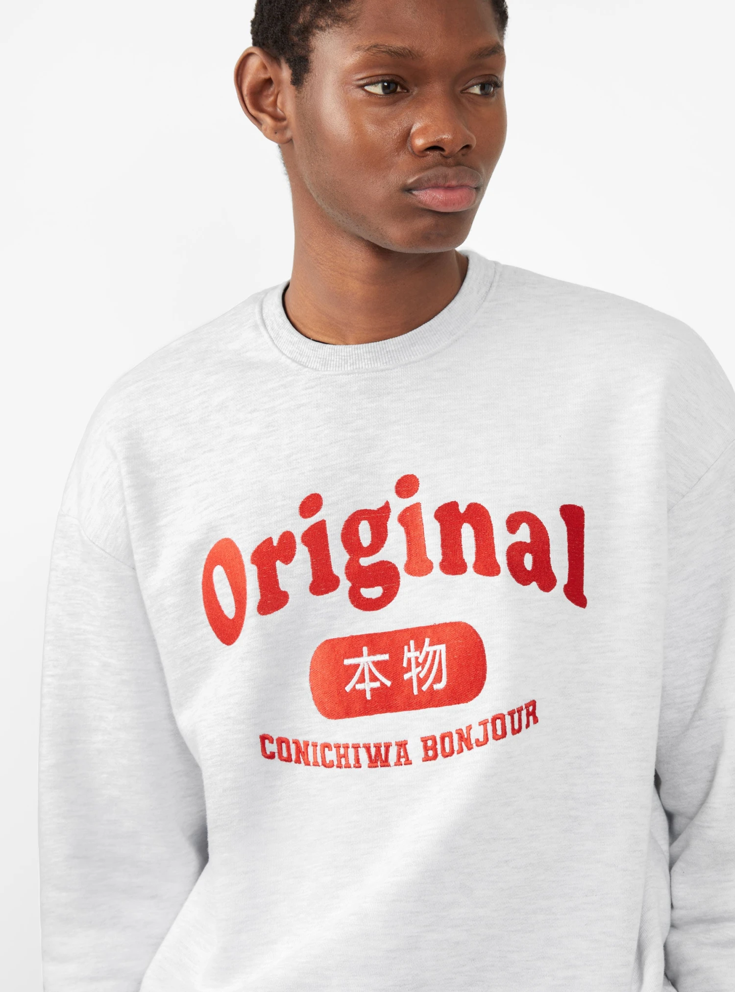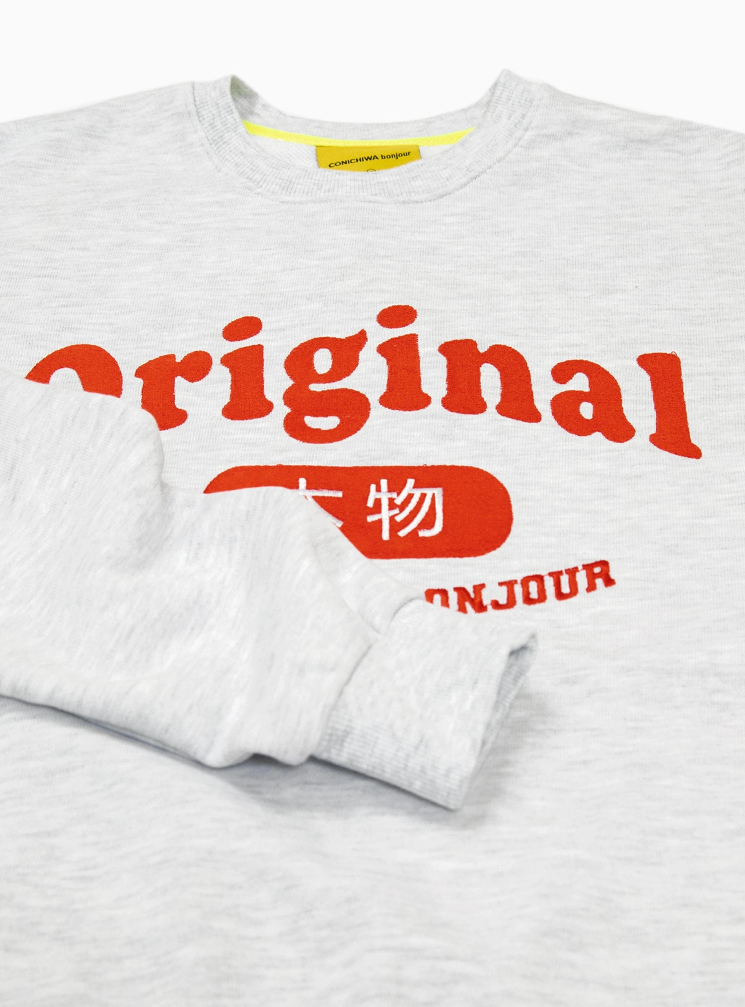 Embroidered with the label’s Original logo at the chest, this ash-grey sweatshirt from Conichiwa Bonjour is cut from cotton jersey to a relaxed silhouette with dropped shoulders.