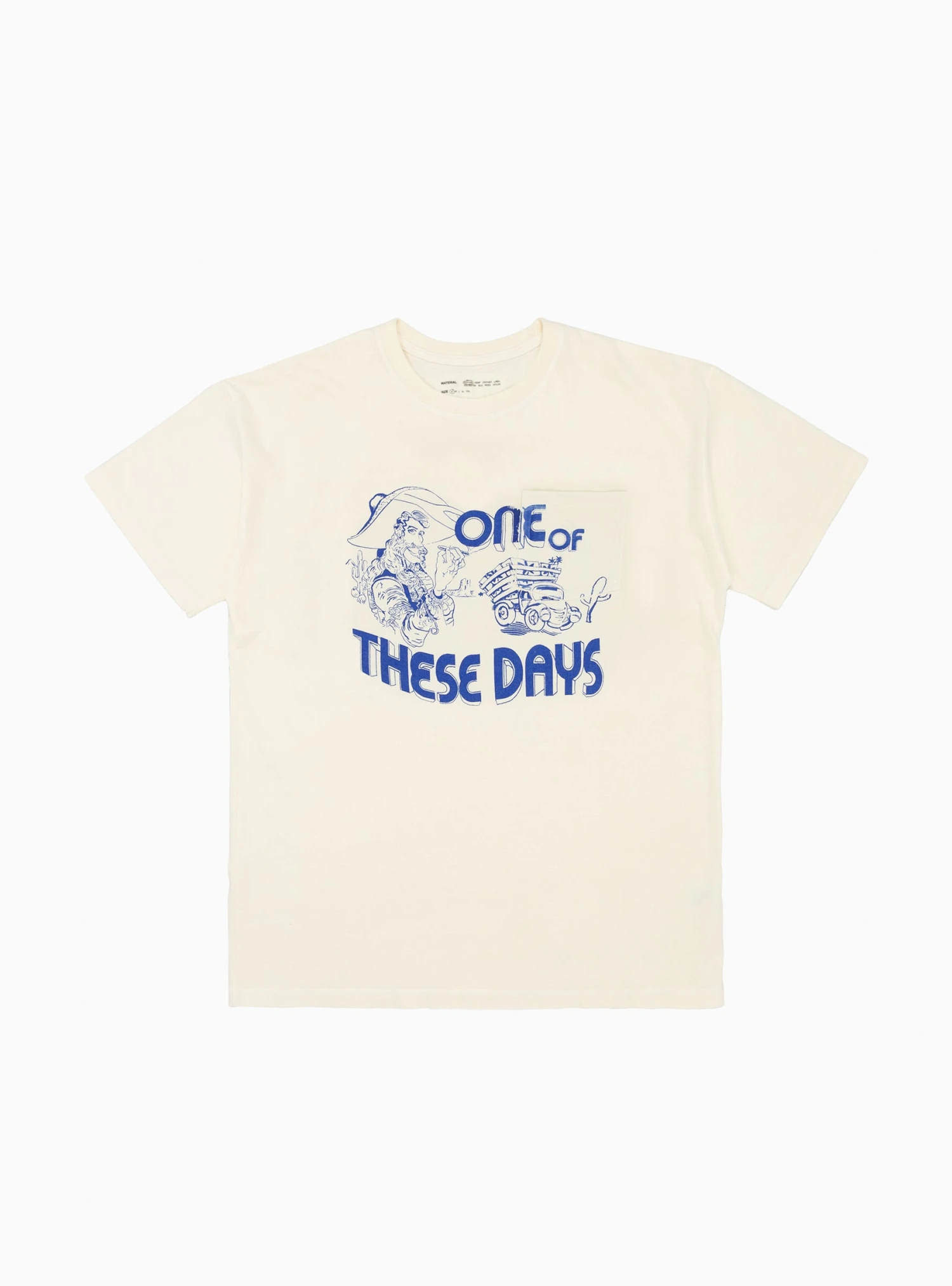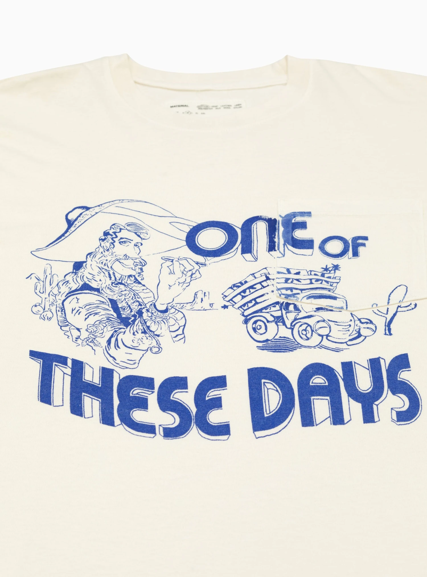 Made in the USA from mid-weight cotton jersey, this bone-hued Panama Red T-shirt from One of These Days is cut to a relaxed silhouette with dropped shoulders, a patch pocket, and features a printed graphic at the chest.