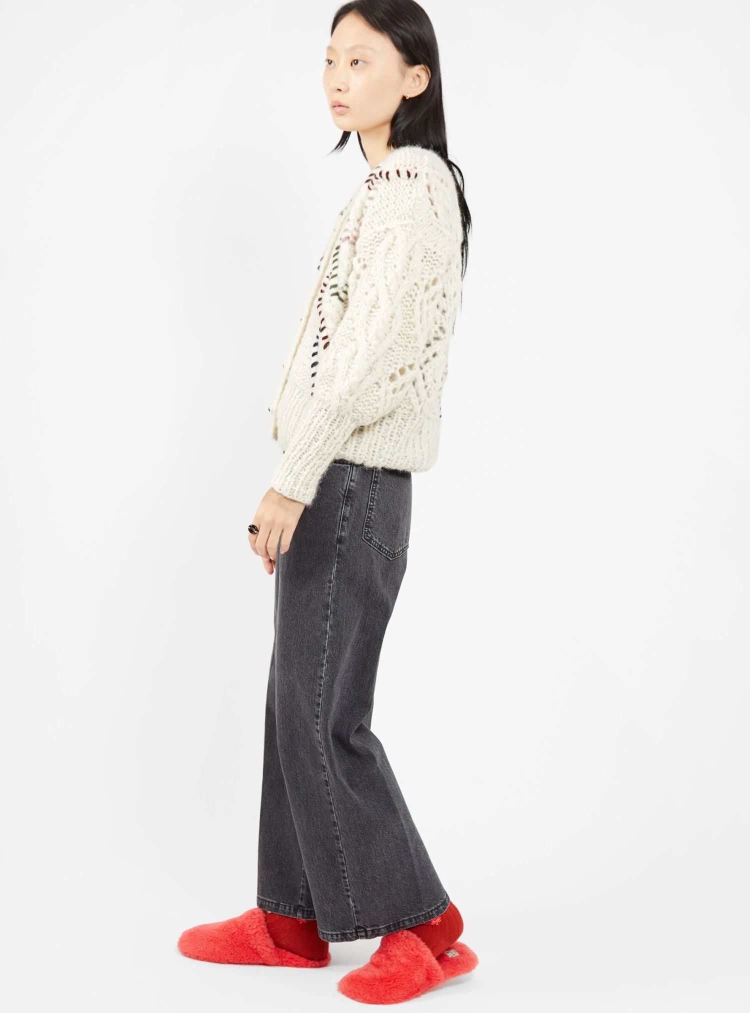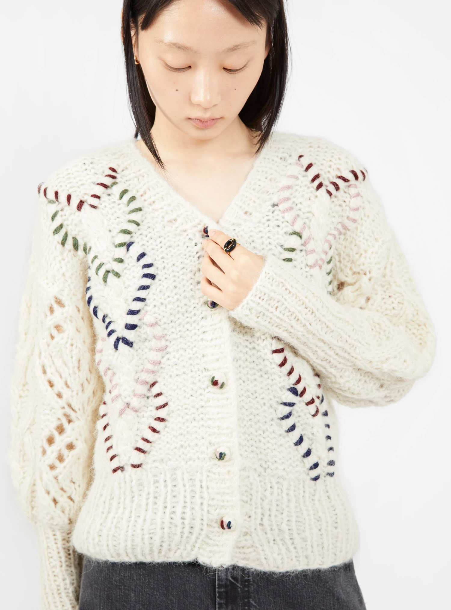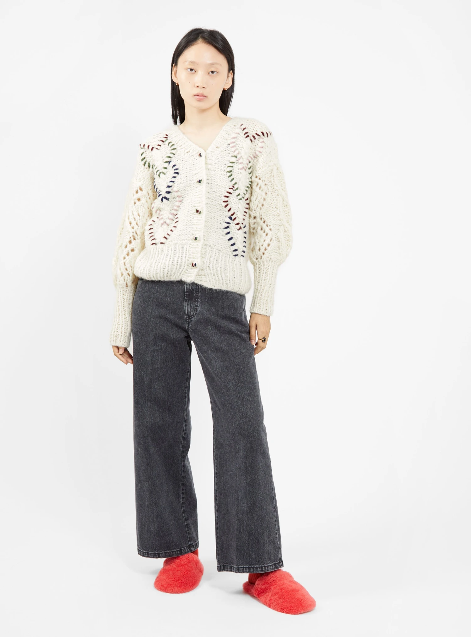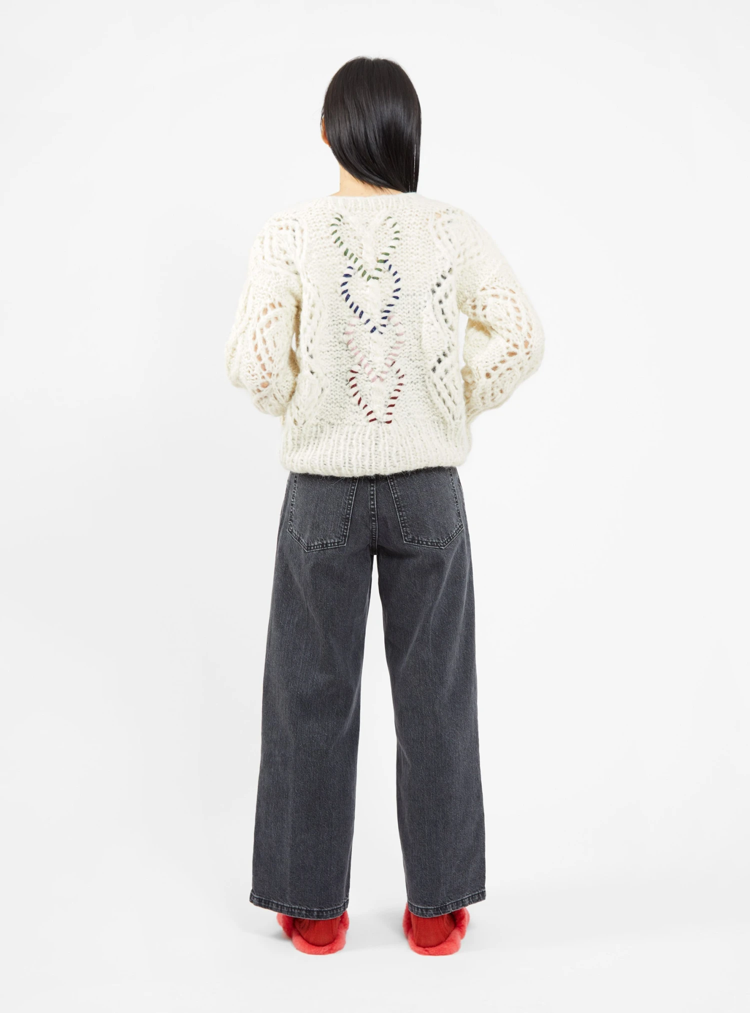 AYNI enlists highly skilled artisans to create its range of knitwear, including this off-white Parya cardigan, which is hand embroidered with multicoloured hearts. Made in Peru from alpaca-blend yarn, it’s knitted by hand to a relaxed silhouette with dropped shoulders and ribbed edges.