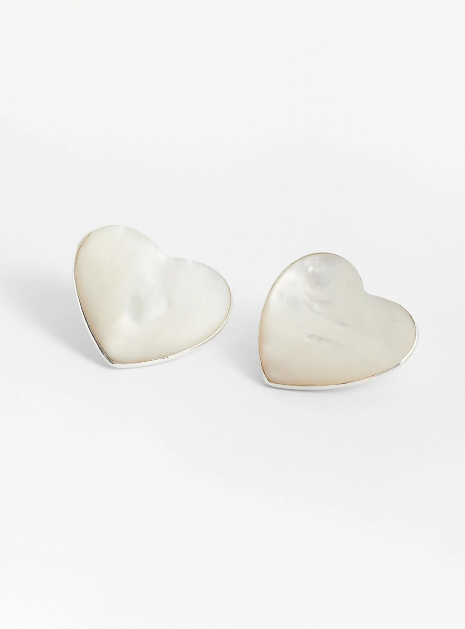 Embellished with shimmering mother of pearls, these aptly named Peal Heart earrings from Annika Inez are made from 925 sterling silver and fasten with butterfly clasps.