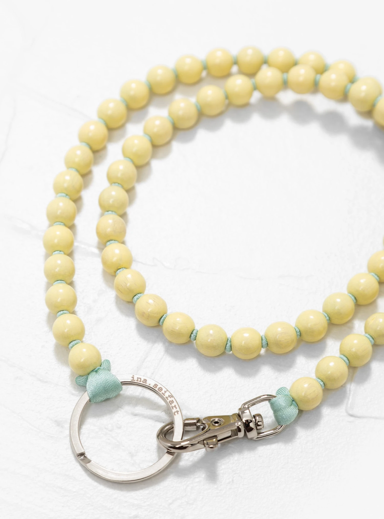 The perfect organisational accessory, this yellow & sage Pearl Long keyholder from Ina Seifart is handmade in Berlin with wooden beads and features silver-tone metal hardware, including a keyring and clasp.