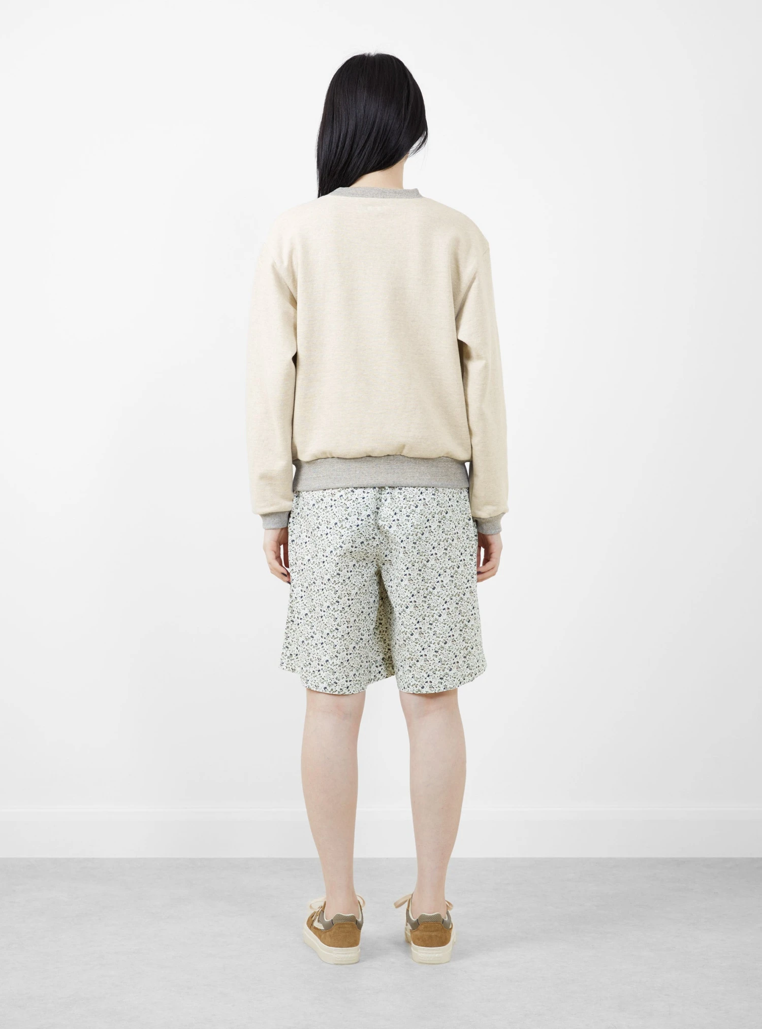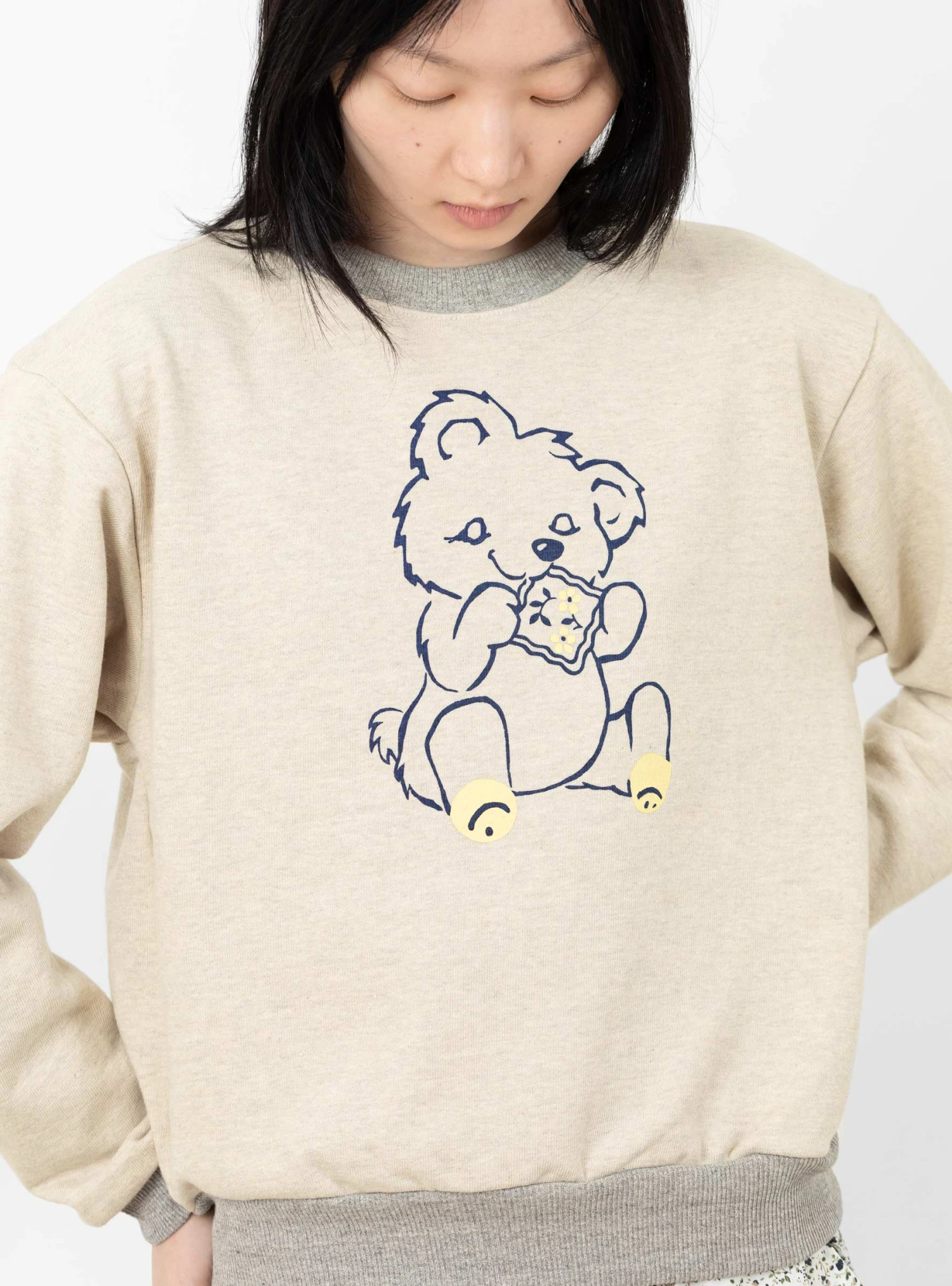 The Peckish Little Bear Crewneck from Kapital arrives in a soft ecru with grey contrast trims. Made in Japan from a soft fleece cotton, the classic crewneck falls to a regular and slightly cropped fit with dropped shoulders. A peckish little bear wearing a pair of Kapital’s happy socks and gnawing on one of the brand’s bandanas is printed at the chest.