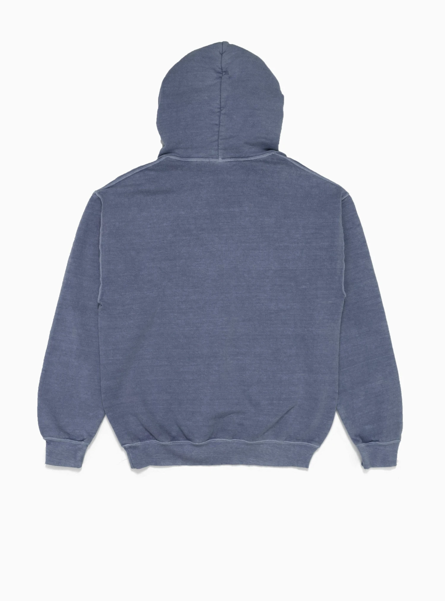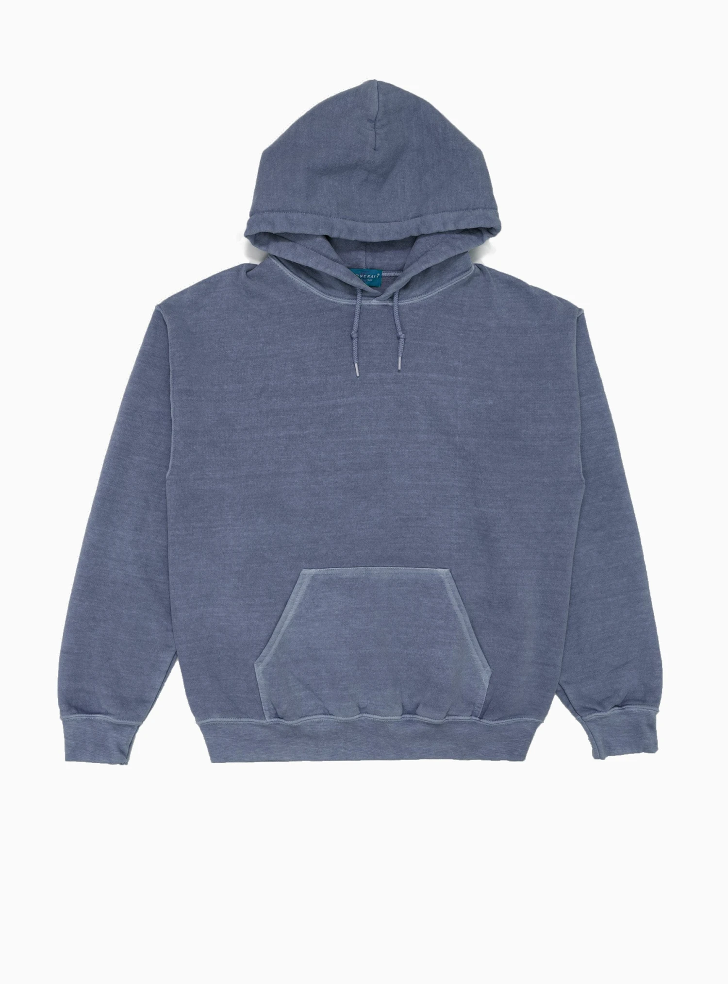 Pigment dyed for a vintage, washed-out finish, this navy hoodie from Towncraft is made from fleece-backed cotton-blend jersey cotton, cut to a relaxed silhouette with dropped shoulders and a kangaroo pocket.