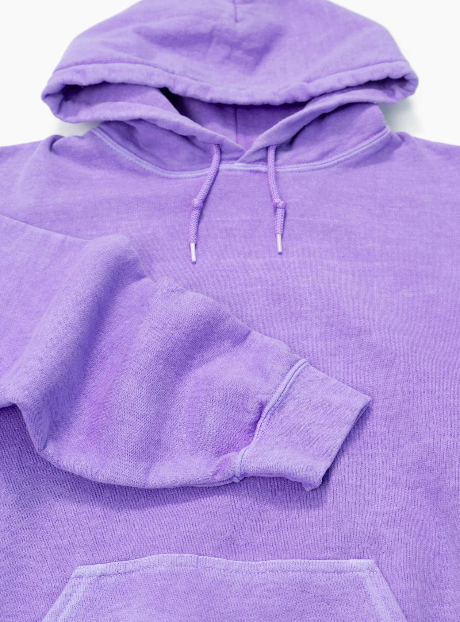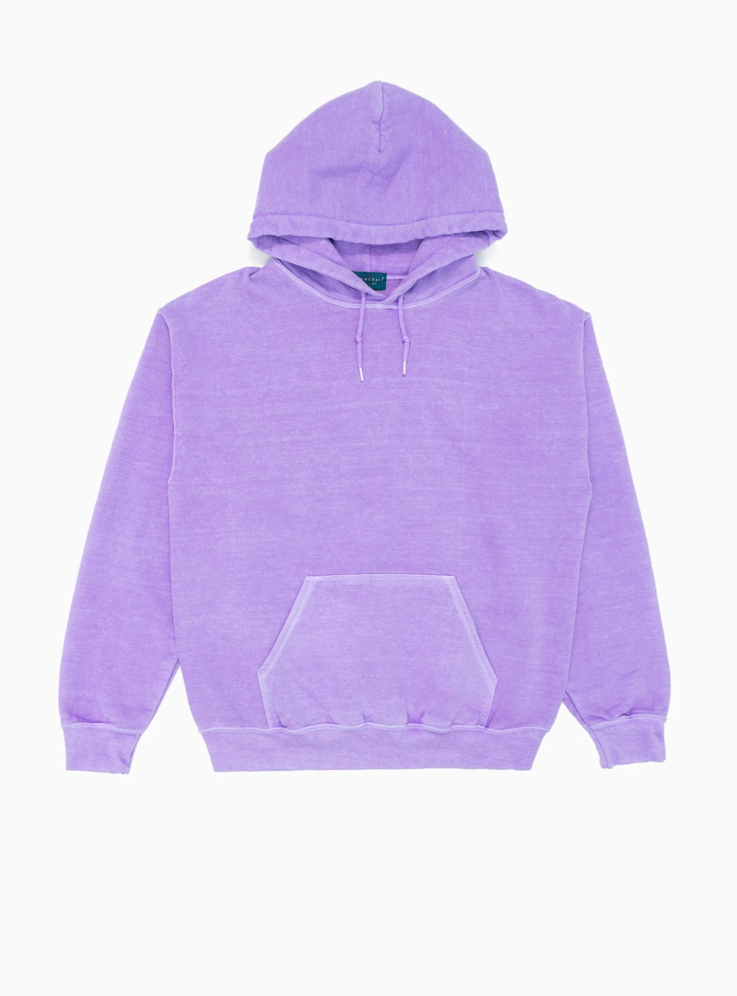 Pigment dyed for a vintage, washed-out finish, this purple hoodie from Towncraft is made from fleece-backed cotton-blend jersey cotton, cut to a relaxed silhouette with dropped shoulders and a kangaroo pocket.