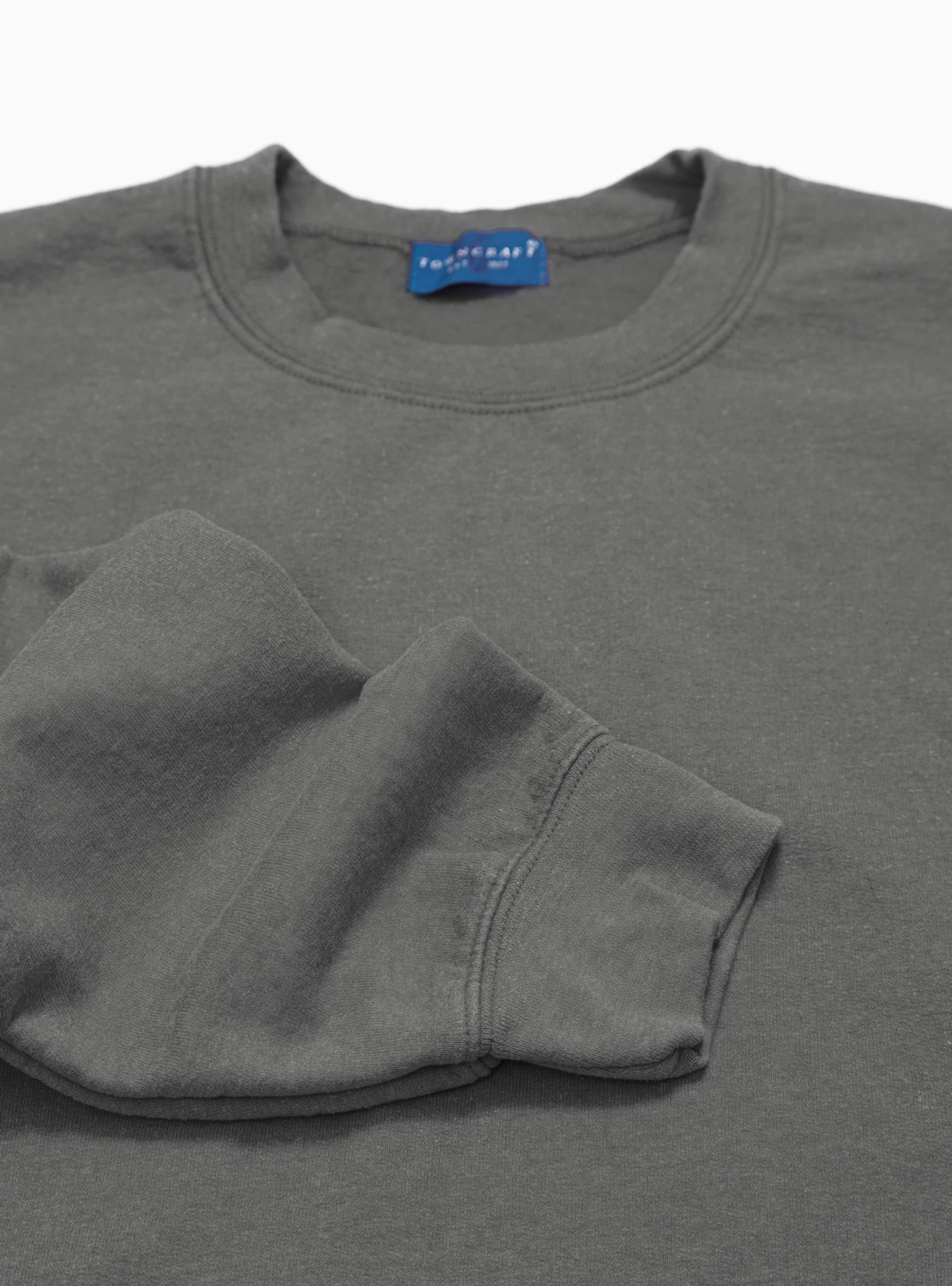 Pigment dyed for a vintage, washed-out finish, this black sweatshirt from Towncraft is made from fleece-backed cotton-blend jersey cotton, cut to a relaxed silhouette with dropped shoulders and a crewneck.