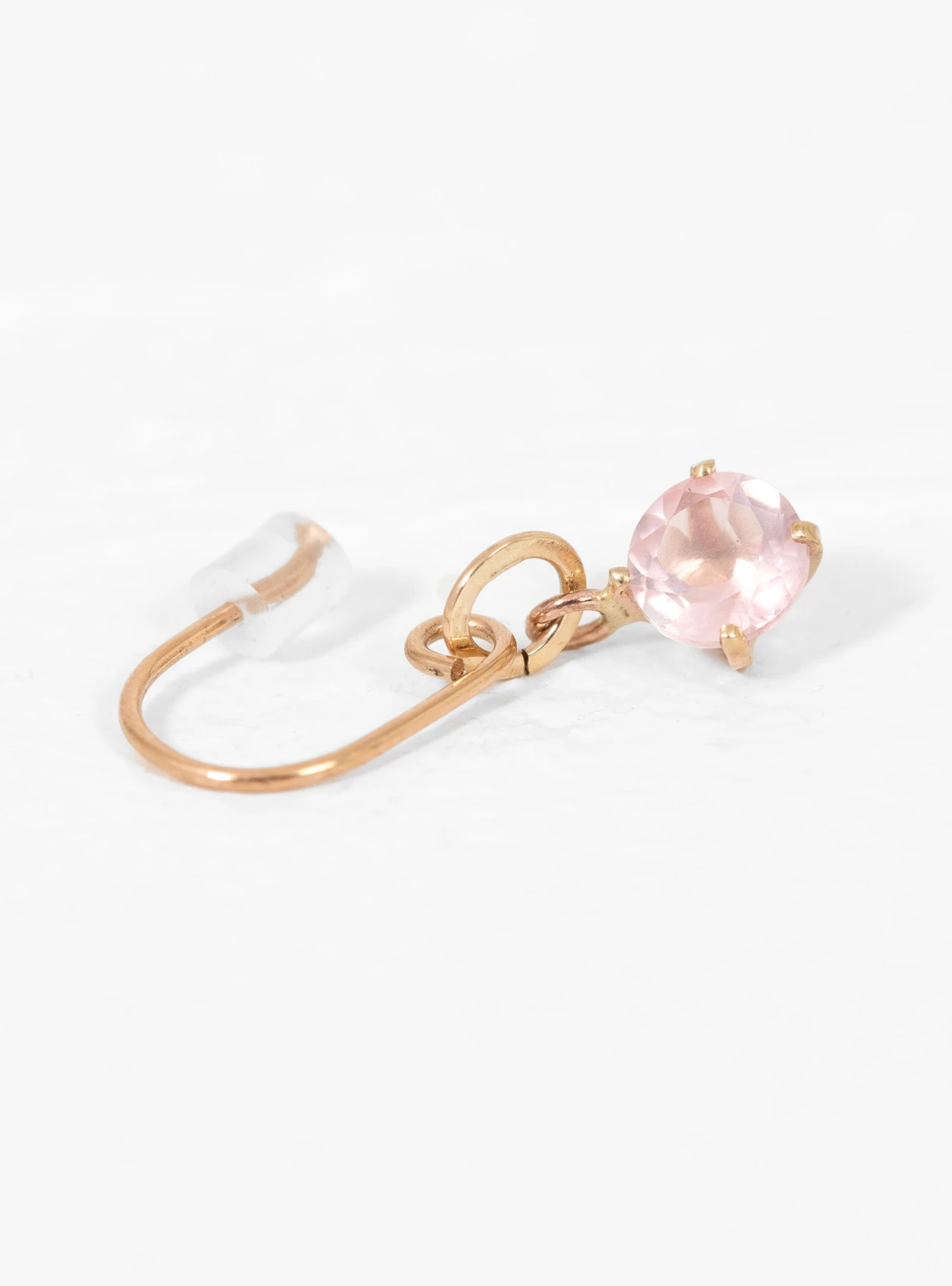 This single earring from Helena Rohner is made from 9kt gold and embellished with a shimmering rose-quartz gemstone suspending from the lobe.