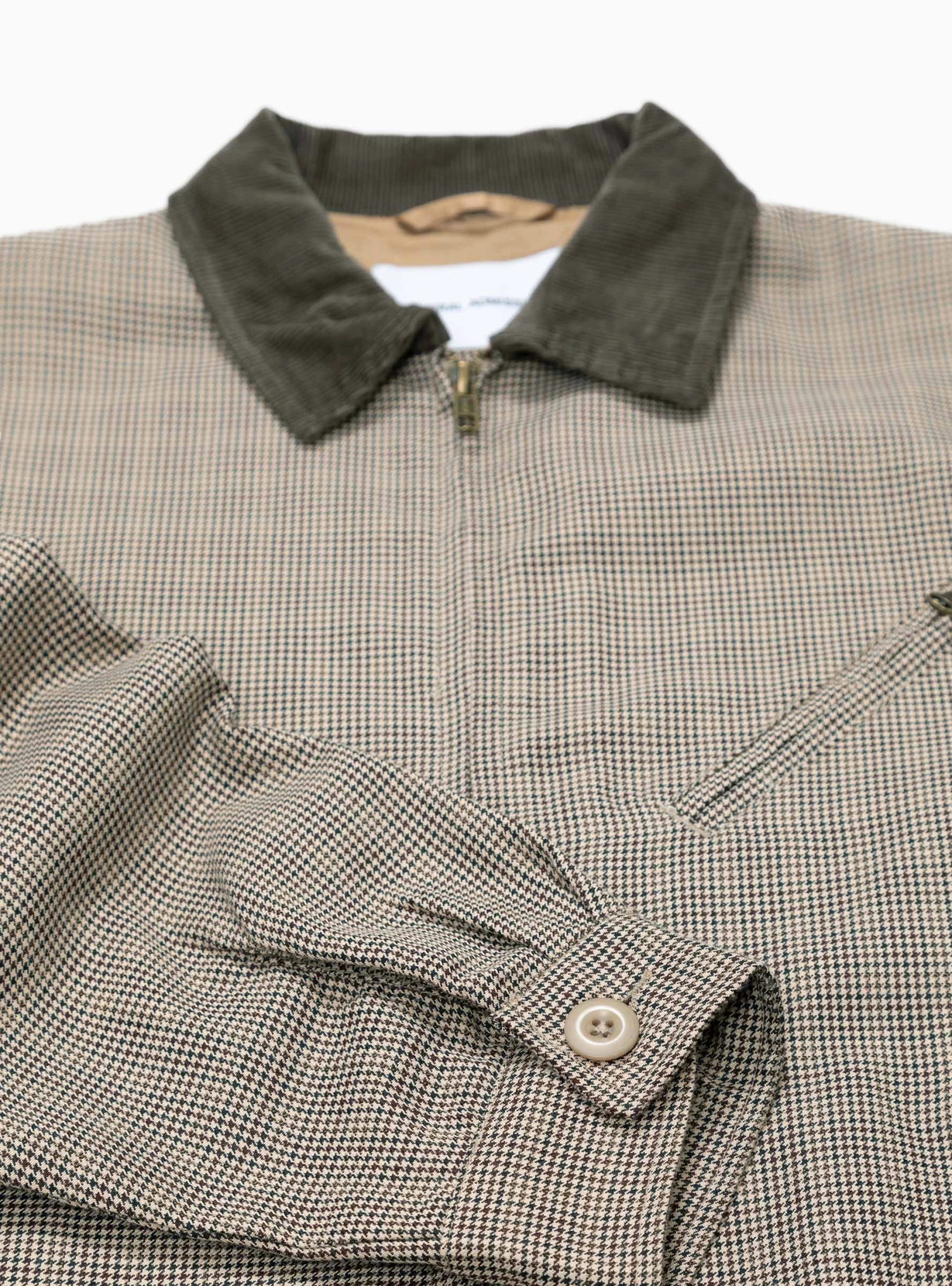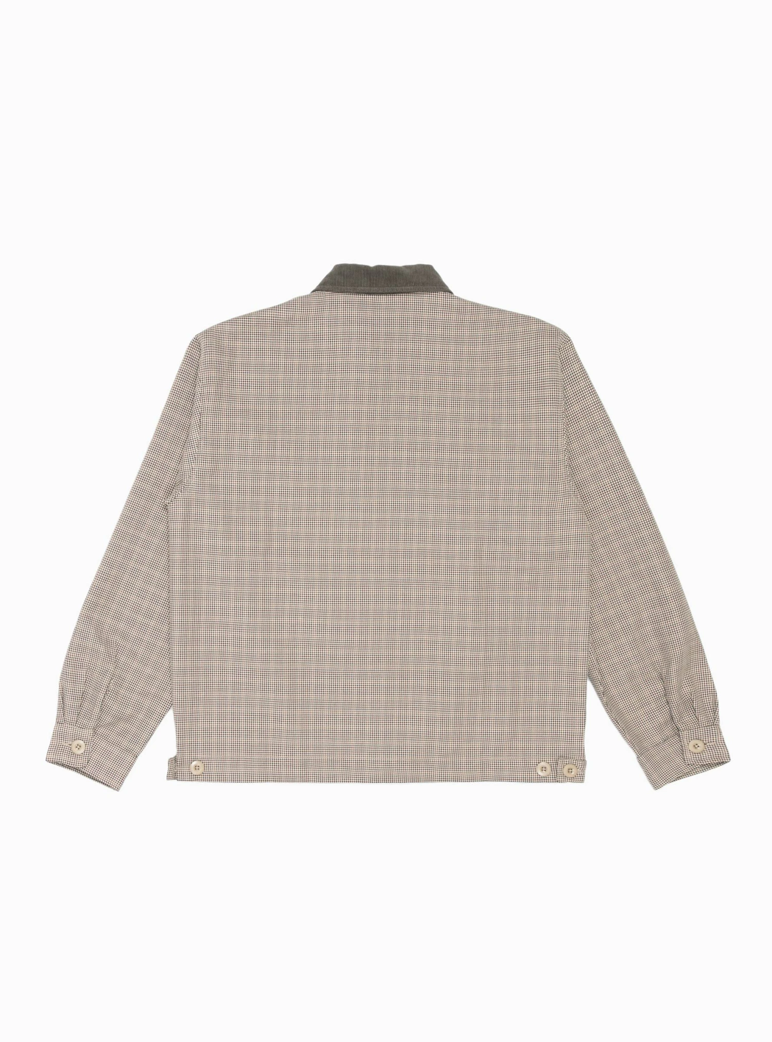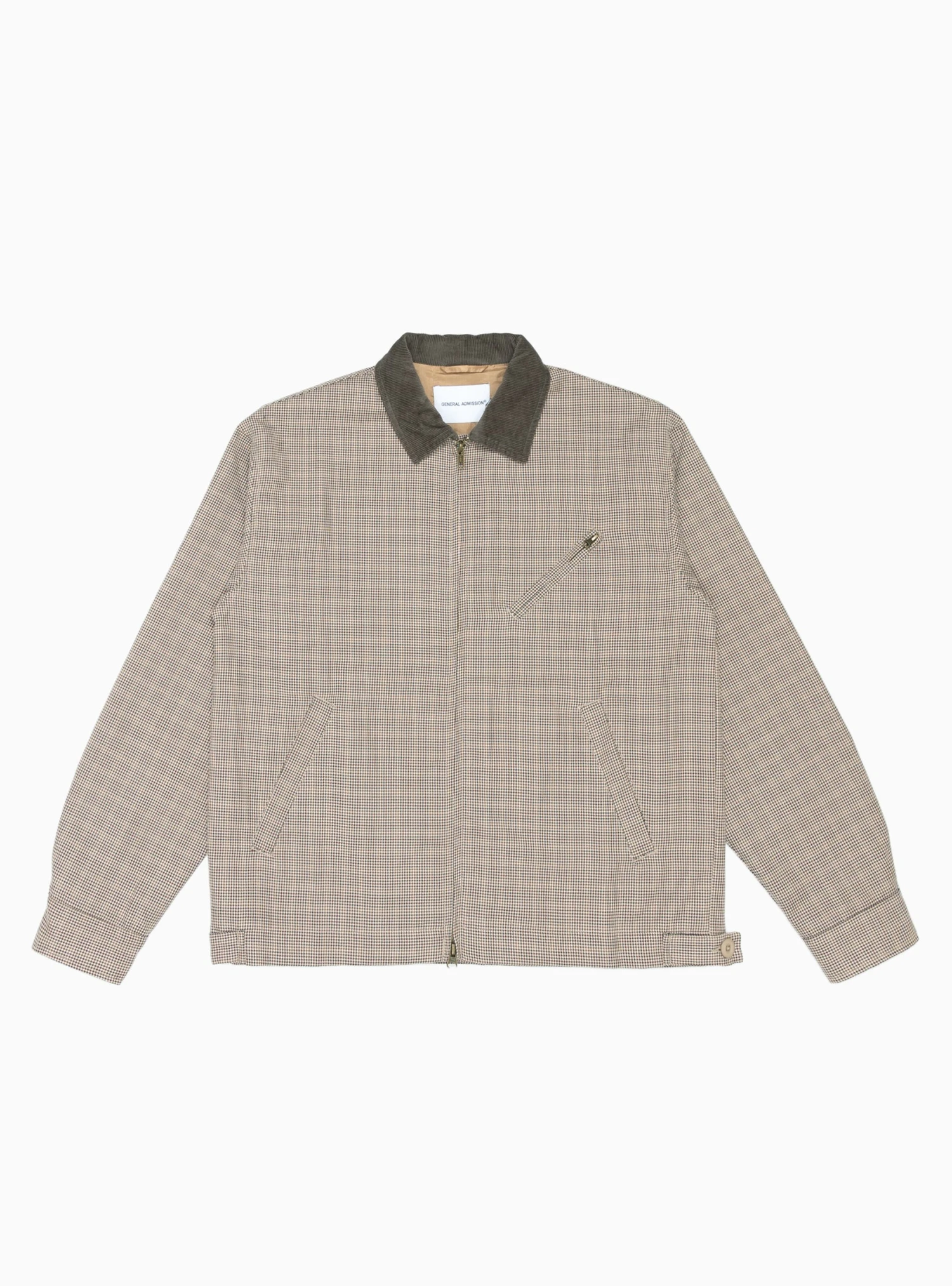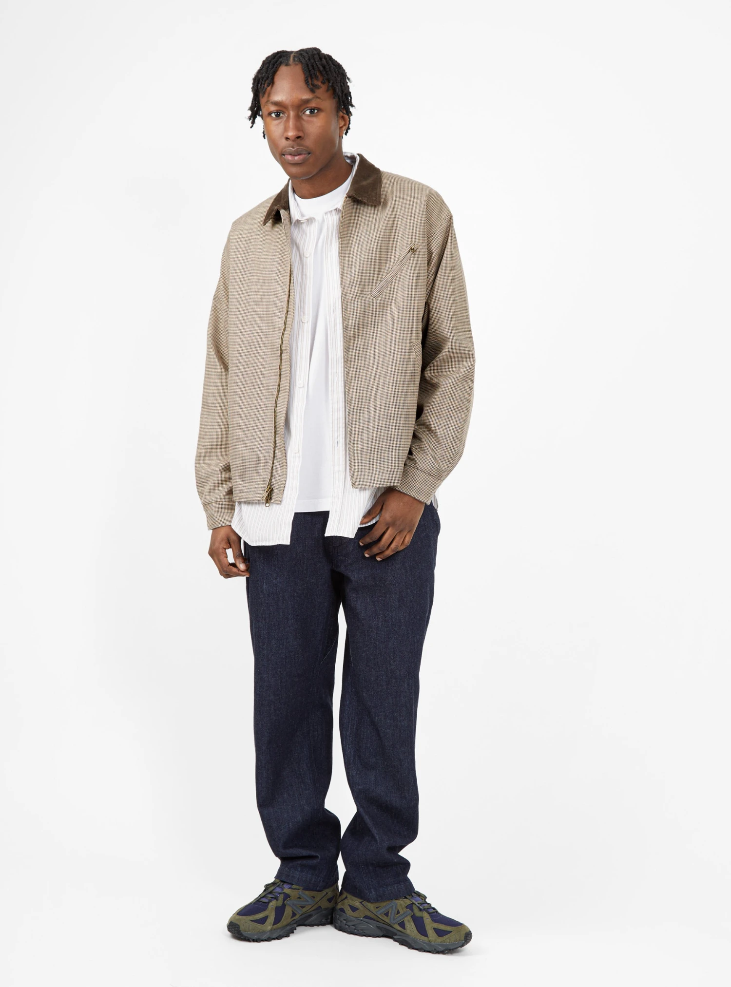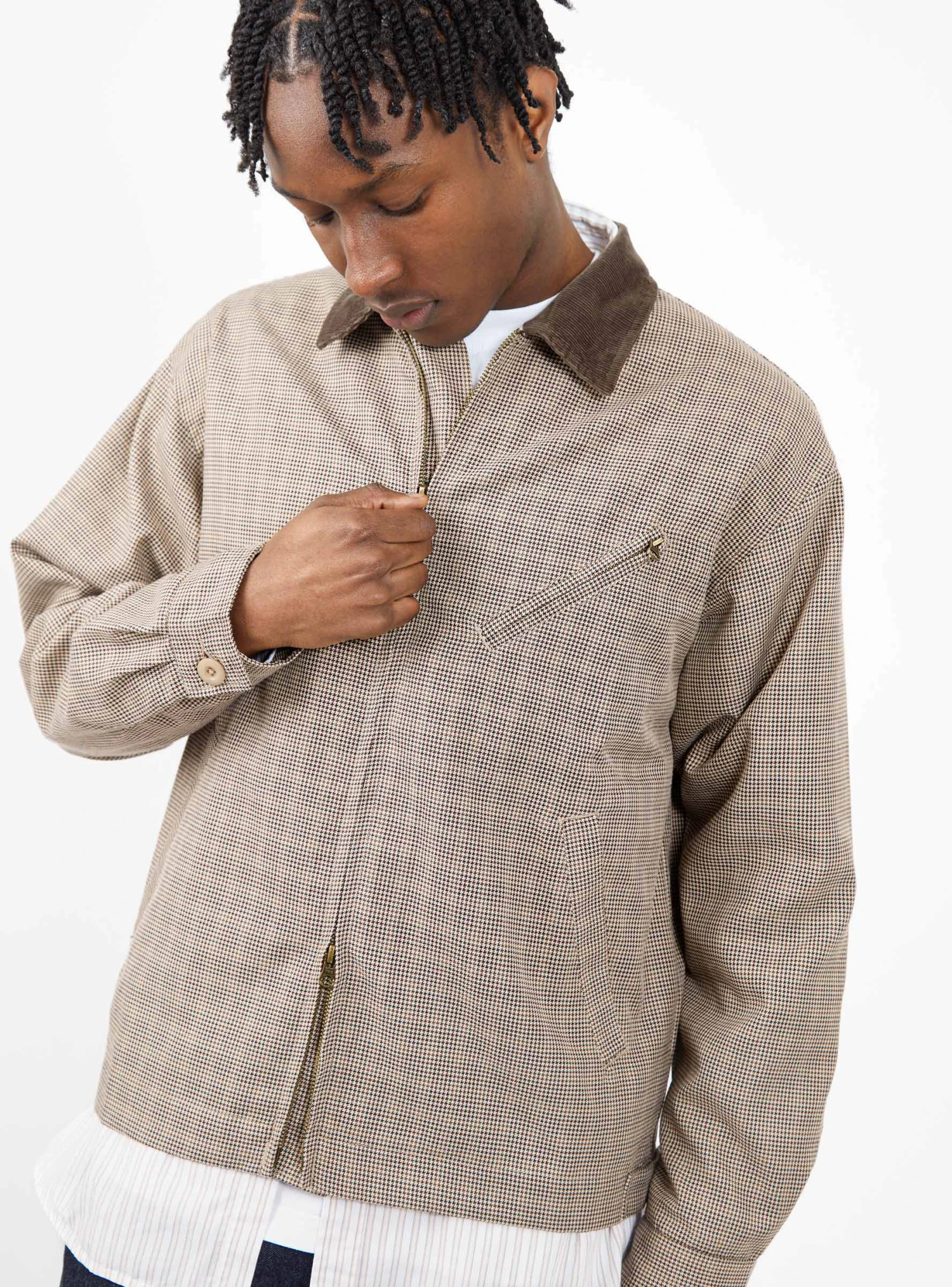 Made from cotton and lined with silk, this beige Plaid jacket from general Admission is cut to a classic silhouette with a corduroy collar, buttoned waist adjusters and a two-way zip fastening.