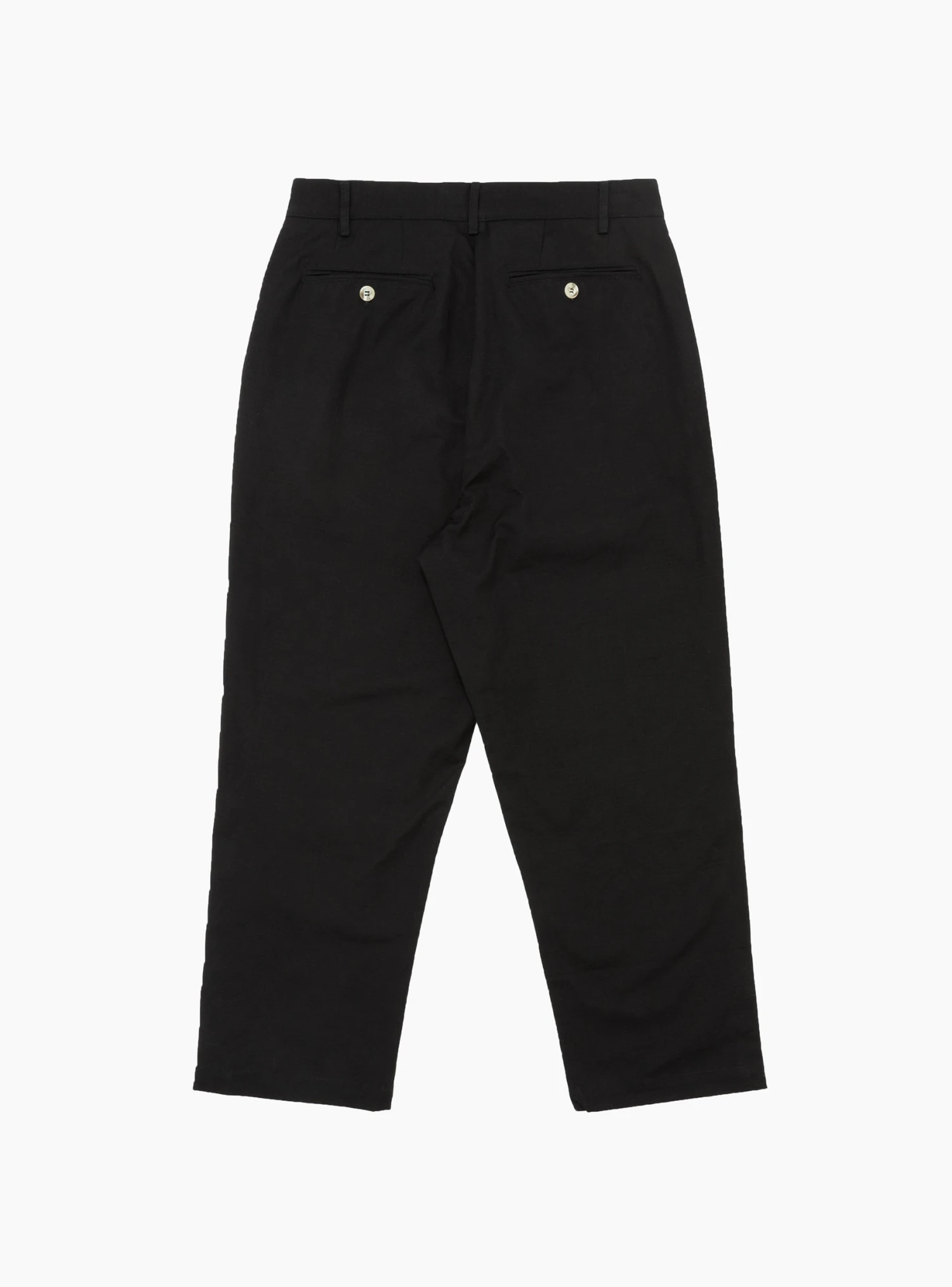 The Pleated Ripstop Trouser from LA-based Brother Brother arrive in a black. Made from a ripstop cotton, the trousers fall to a relaxed fit with a wide finish. They feature double pleats, with a higher rise and are finished with two rear button pockets, side pockets and a zip-fly closure.