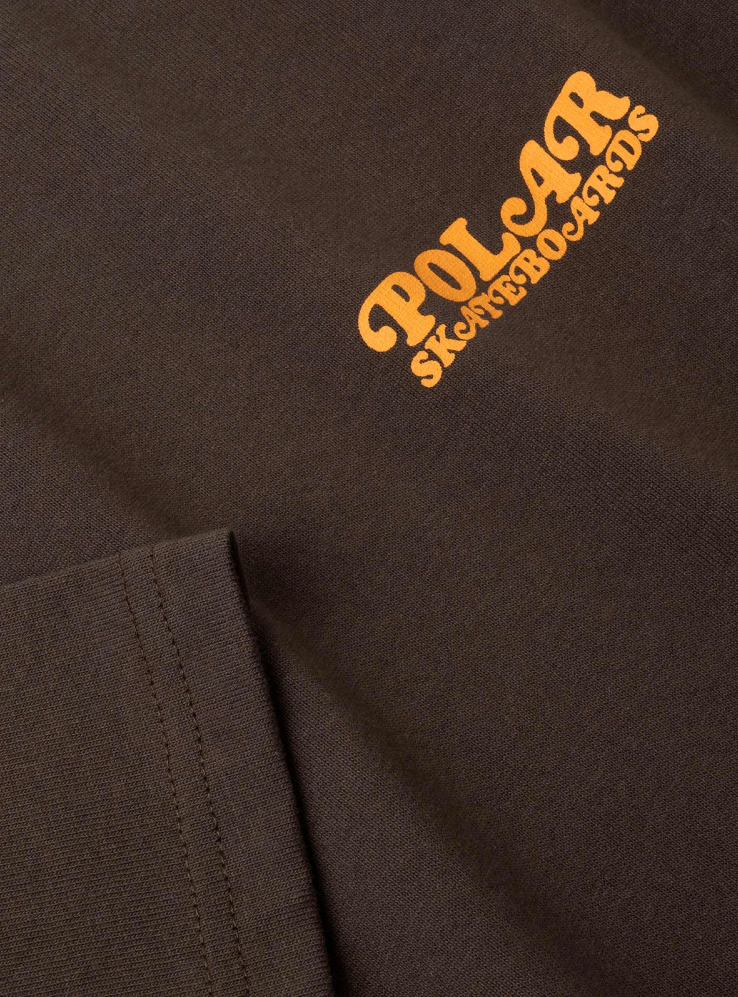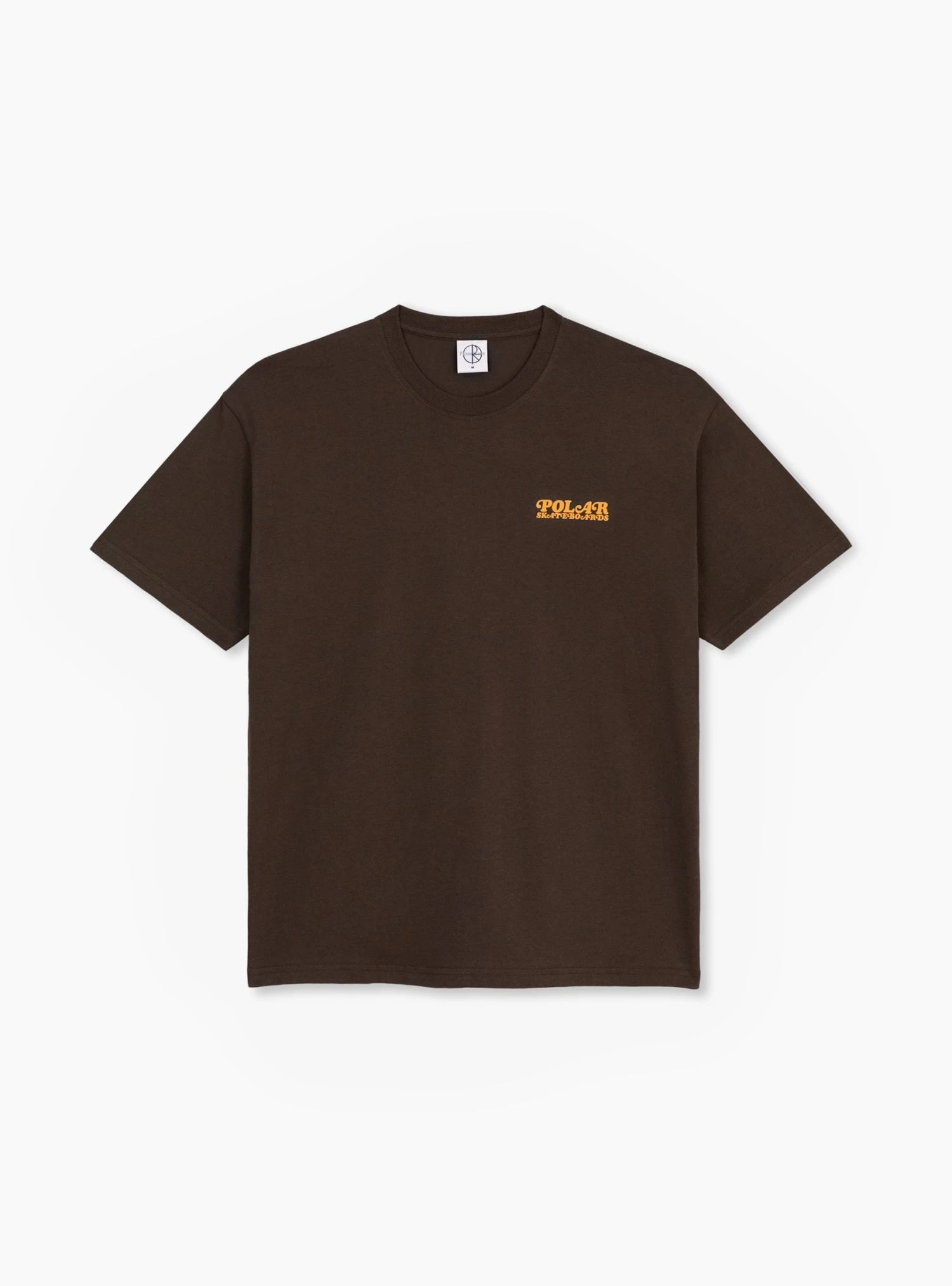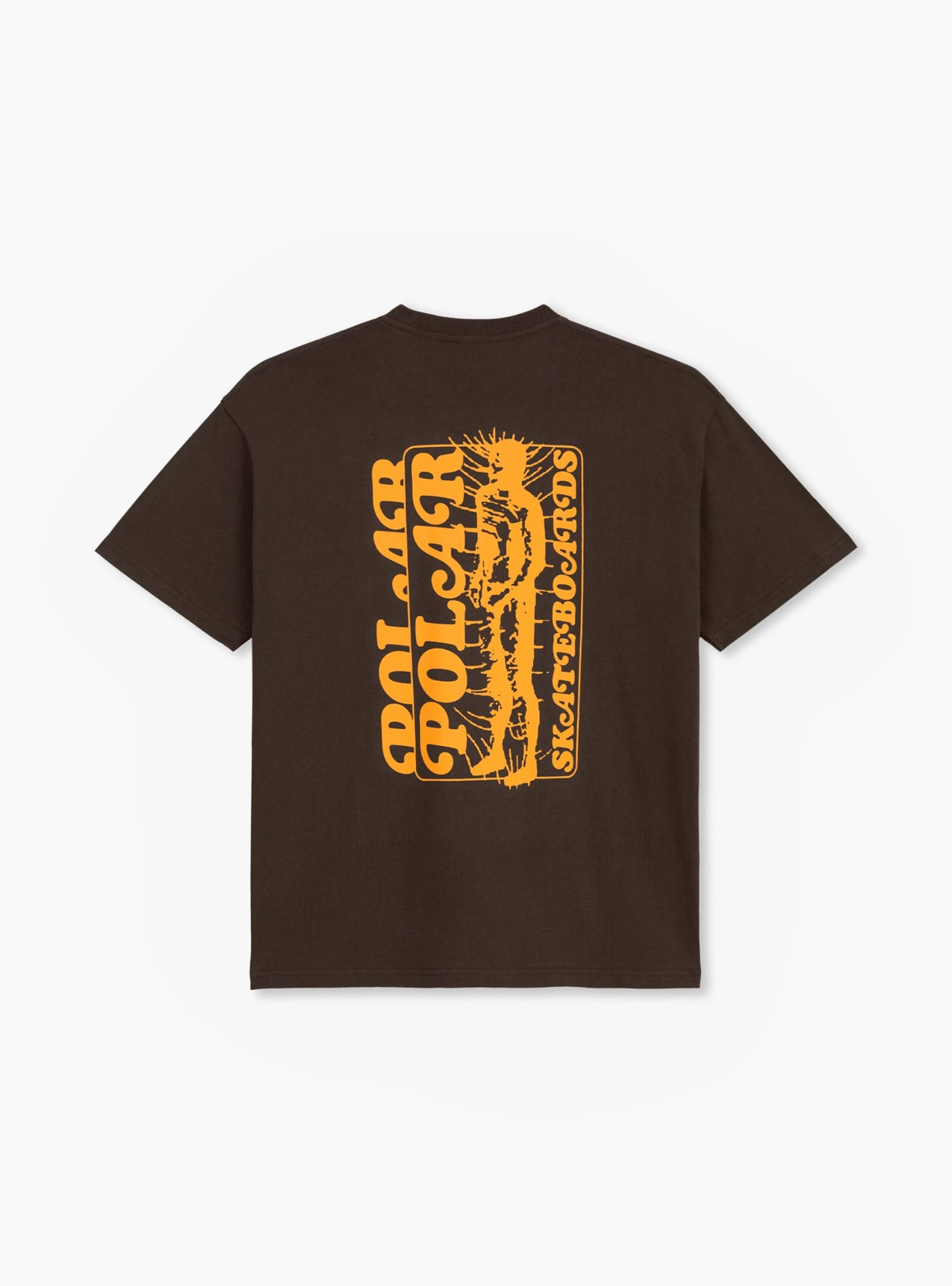 The Fields T-Shirt by Polar Skate Co. arrives in a chocolate brown with orange graphics. Made in Portugal from 100% cotton, the tee falls to a relaxed fit. It is finished with custom printed graphics at the front and across the back.