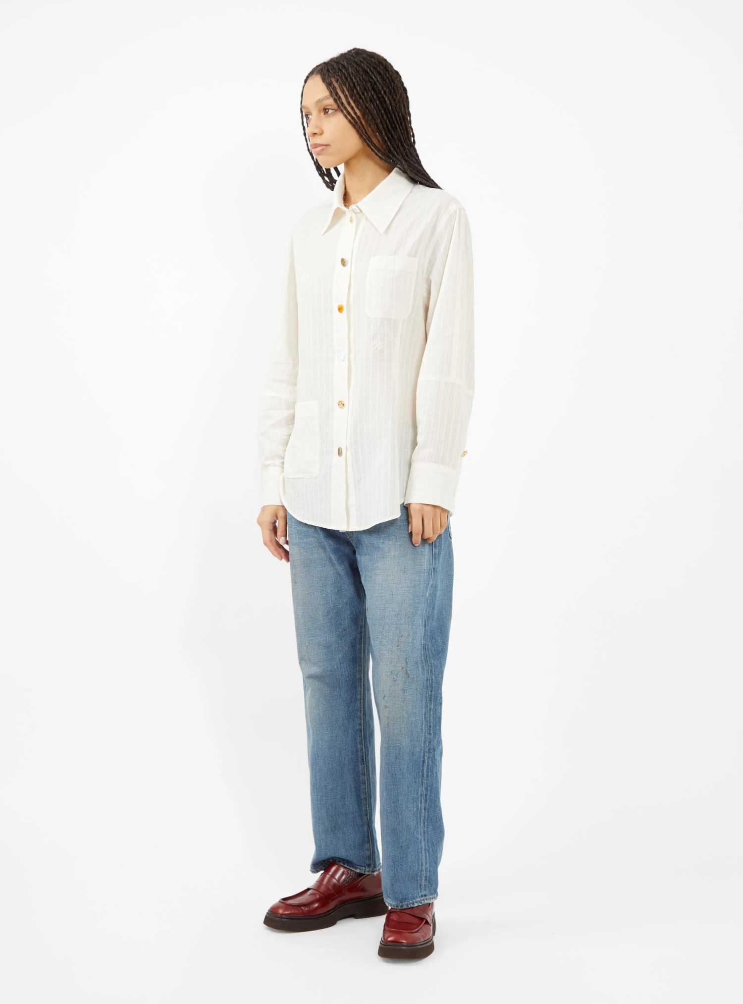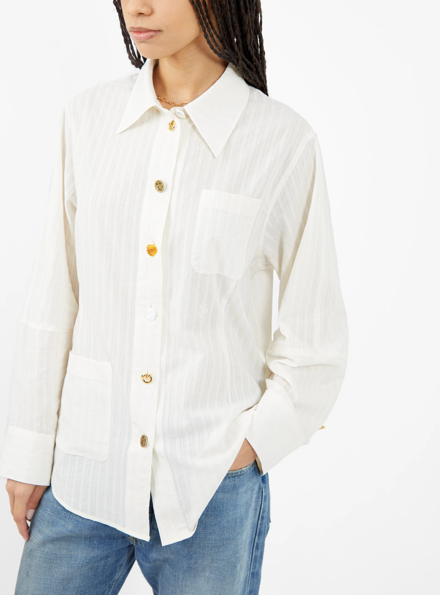 Made from a soft and lightweight cotton blend, this off-white Eris shirt from Rejina Pyo is cut to a relaxed silhouette with dropped shoulders and asymmetric patch pockets.