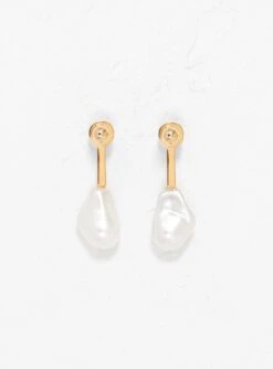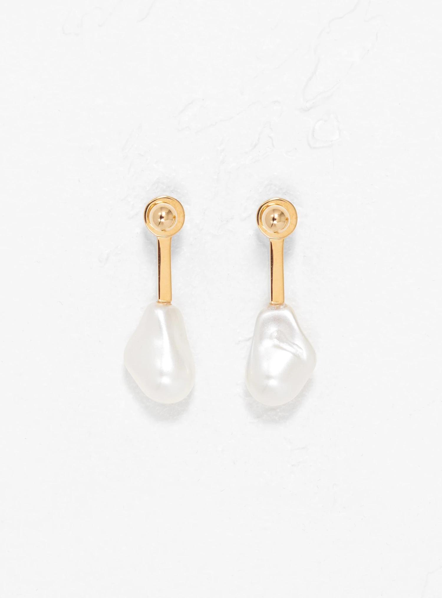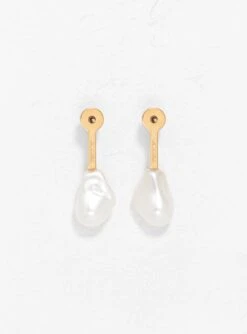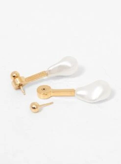 Made in Italy from gold-tone brass, these Reverse Droplet earrings from Rejina Pyo are embellished with elegant glass drops that imitate the texture of Mother of Pearls.