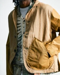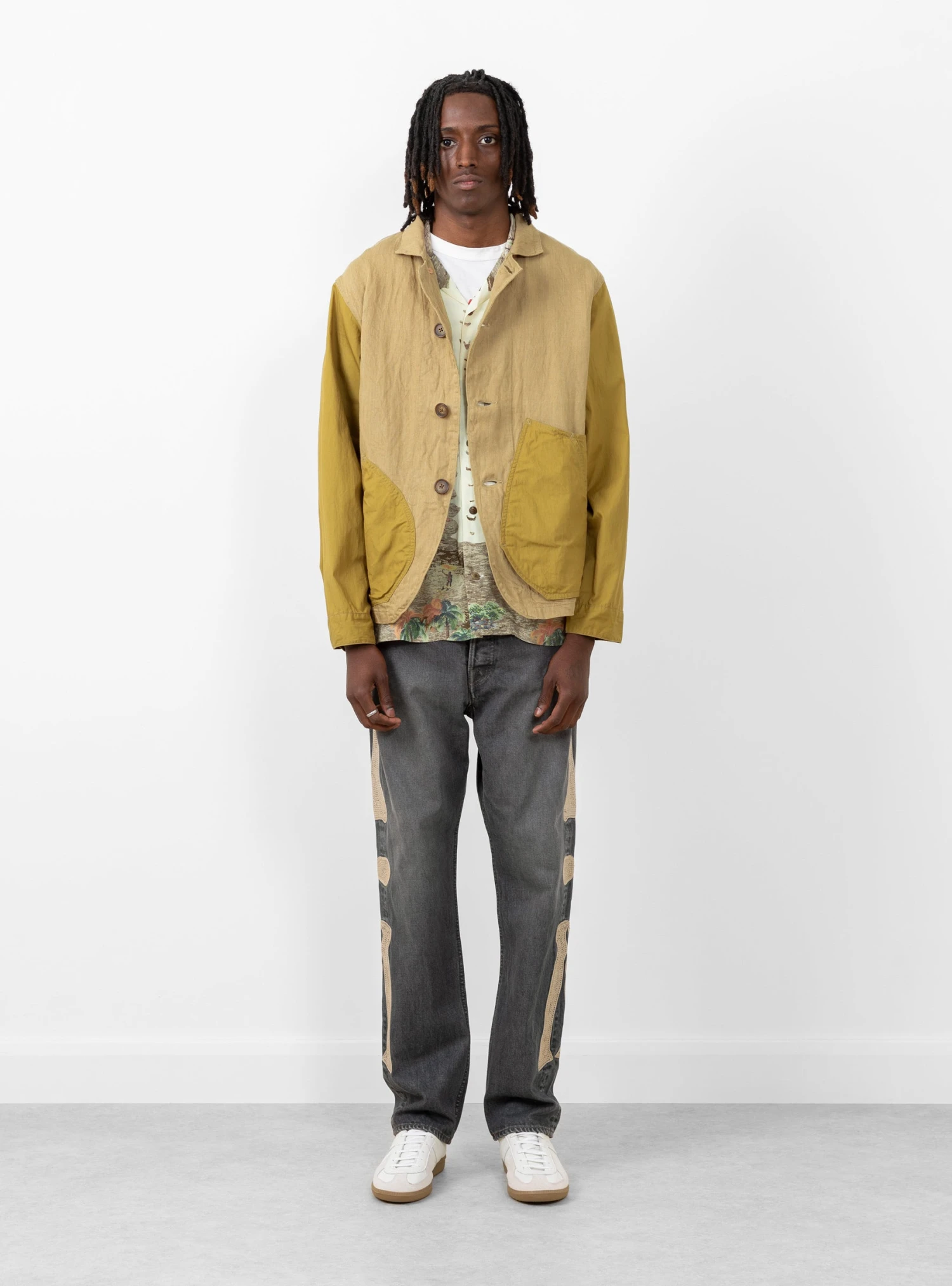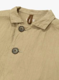 The Ringoman Coverall from Kapital arrives in a beige, with tonal pockets and sleeves. Made in Japan, the jacket is cut from a mixture of linen with Gabardine sleeves, which give the jacket a lightweight feel. The garment falls to a regular fit with a curved hem and features a full button front, as well as two hand and stow pockets. It is rounded off with a distinctive large rear stow pocket, which has multiple openings.