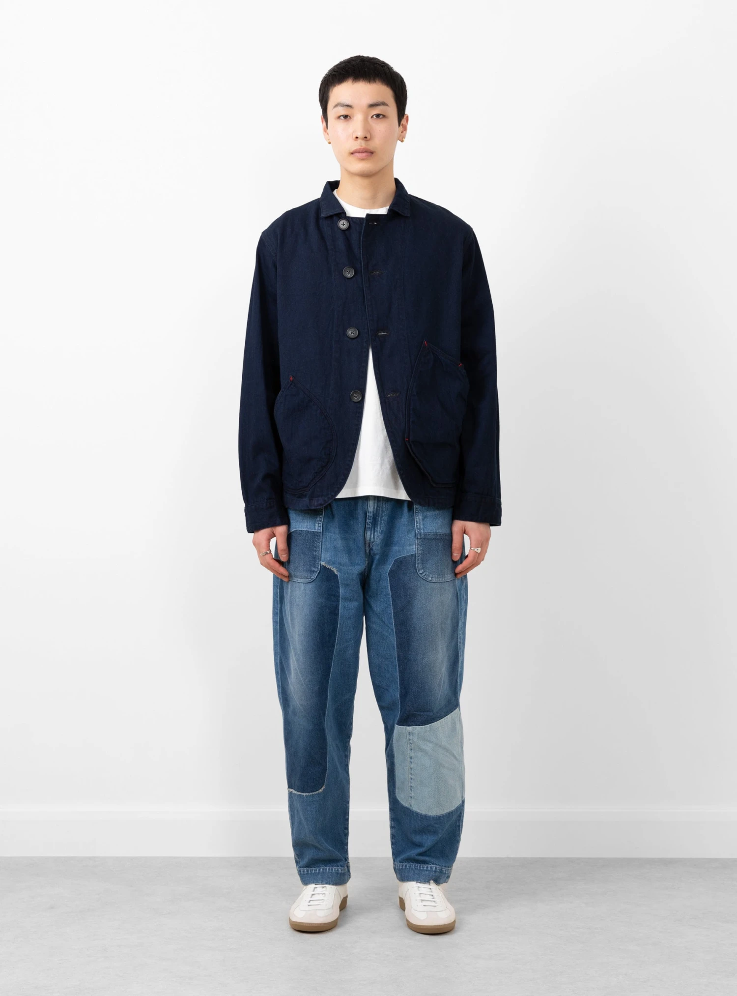 The Ringoman Coverall from Kapital arrives in an Indigo denim. Made in Japan, the jacket is cut from a mixture of 10oz and 8oz Japanese Denim, which give it weight and texture. The garment falls to a regular fit with a curved hem and features a full button front, as well as two hand and stow pockets. It is rounded off with a distinctive large rear stow pocket, which has multiple openings.