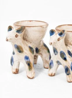 Malaika enlists highly skilled Egyptian artisans to create its range of homeware, including this charming off-white salt and pepper set. Handcrafted from clay by a potter in the oasis village of Tunis, Fayoum, it comprises two cow-inspired pieces with cups to store your condiments.