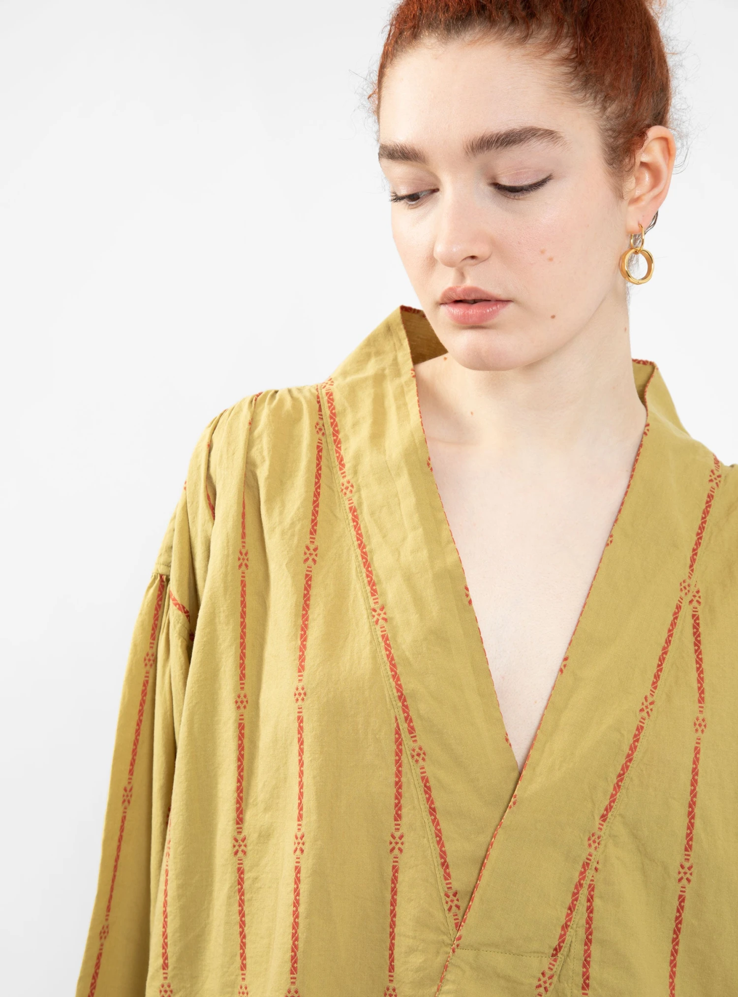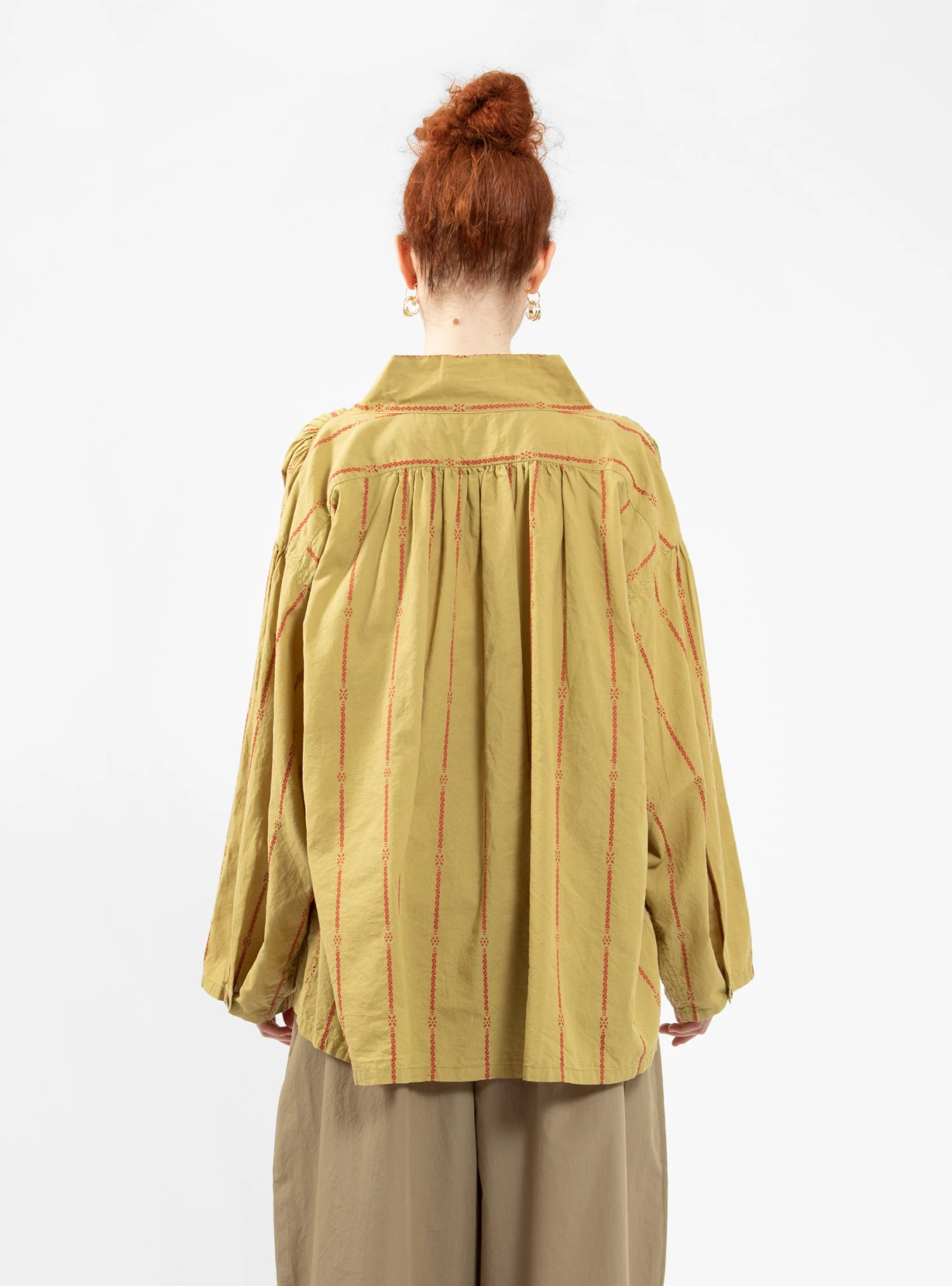 Kapital nods to its Japanese heritage with the Siam Shirt, with its lightweight cotton blend fabric cut to an oversized fit reminiscent of classic kimono styles. This piece is finished with gathers on the yoke for volume and an all-over stripe pattern in a contrasting red.