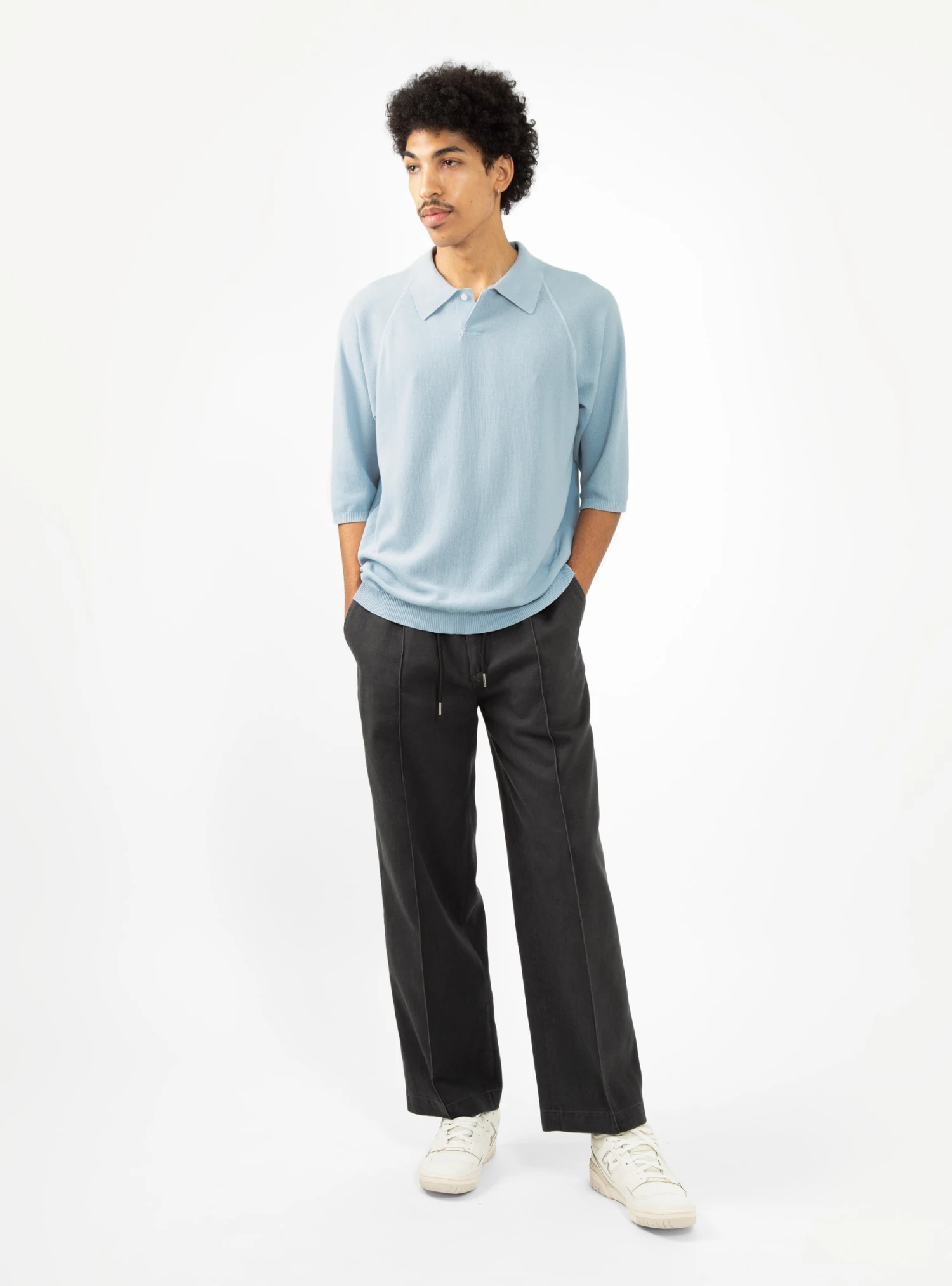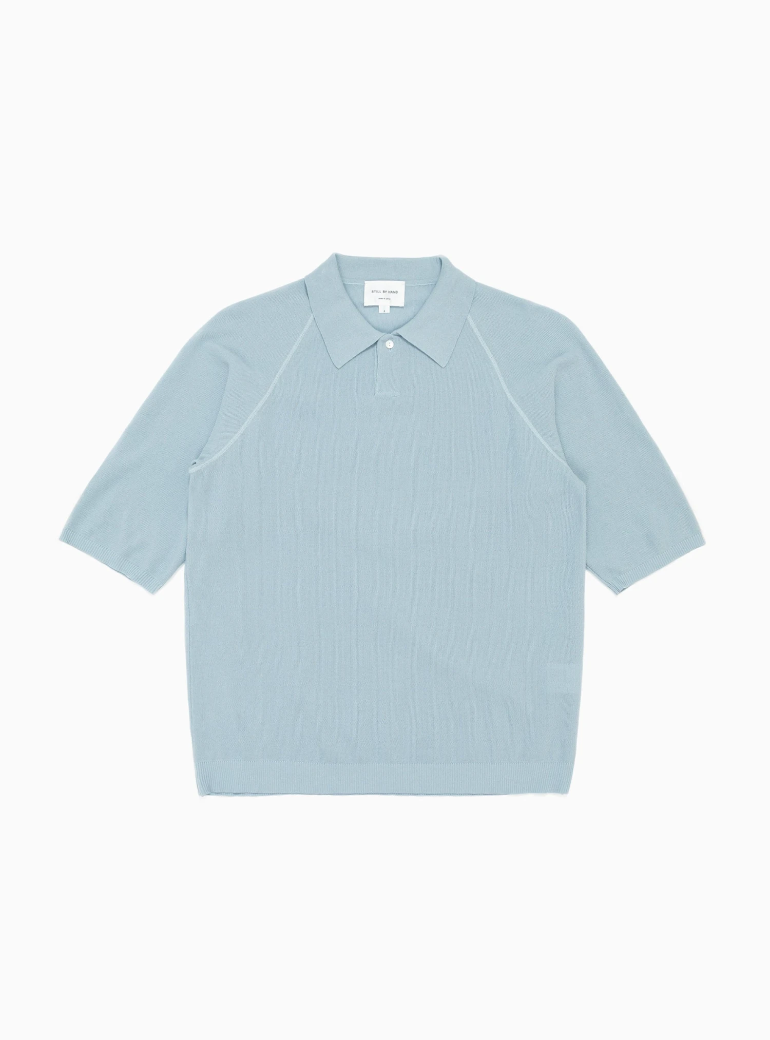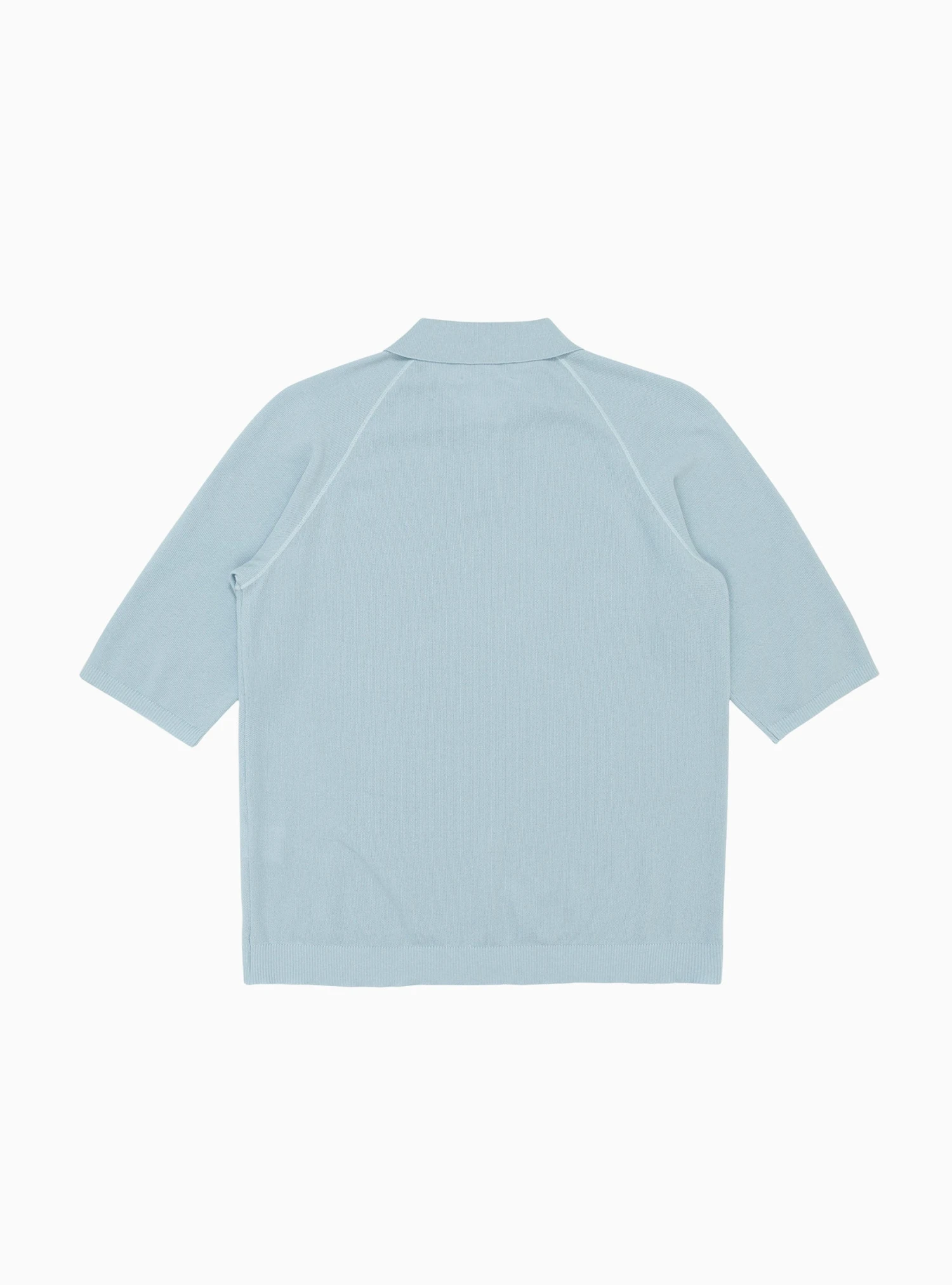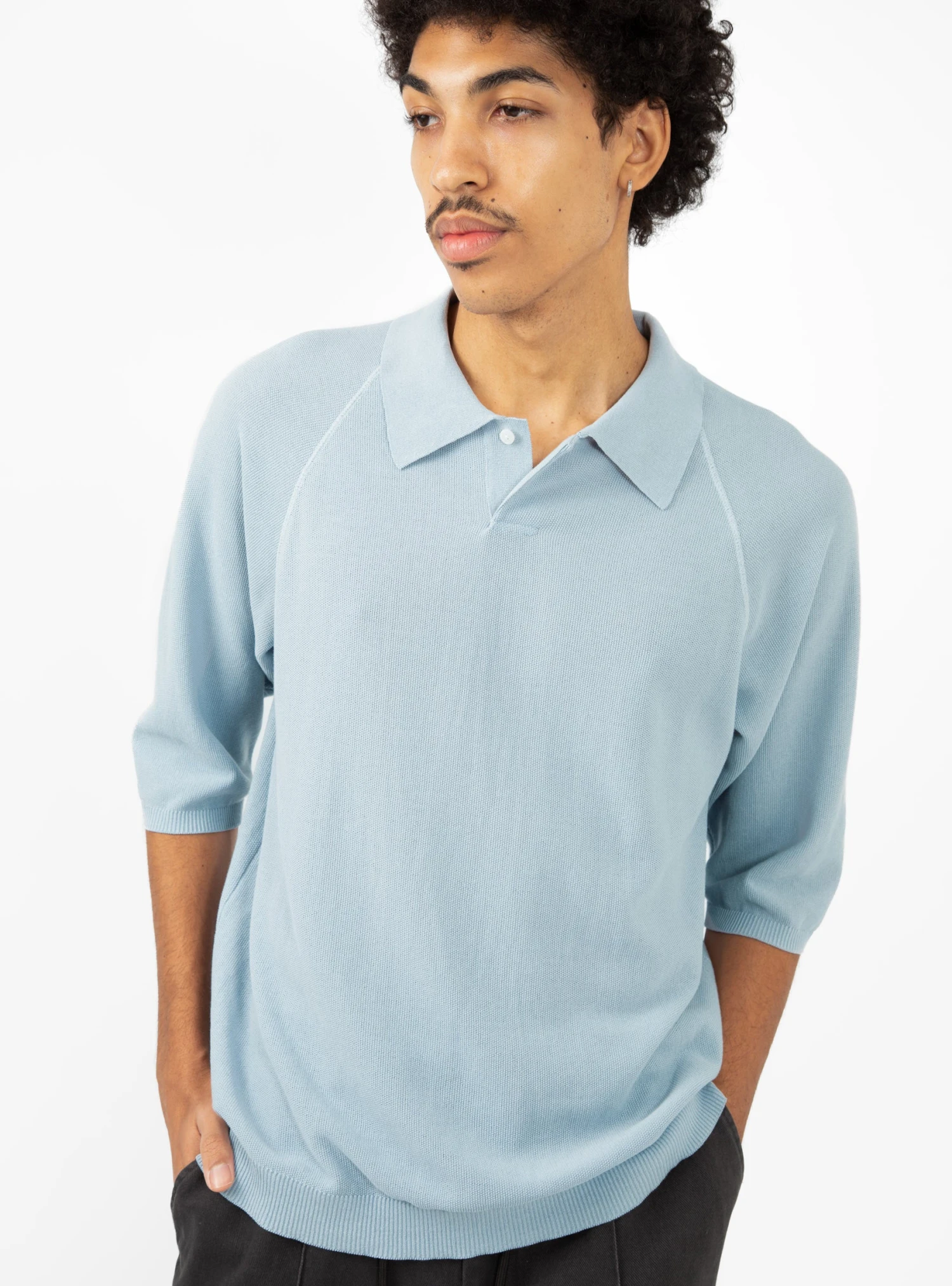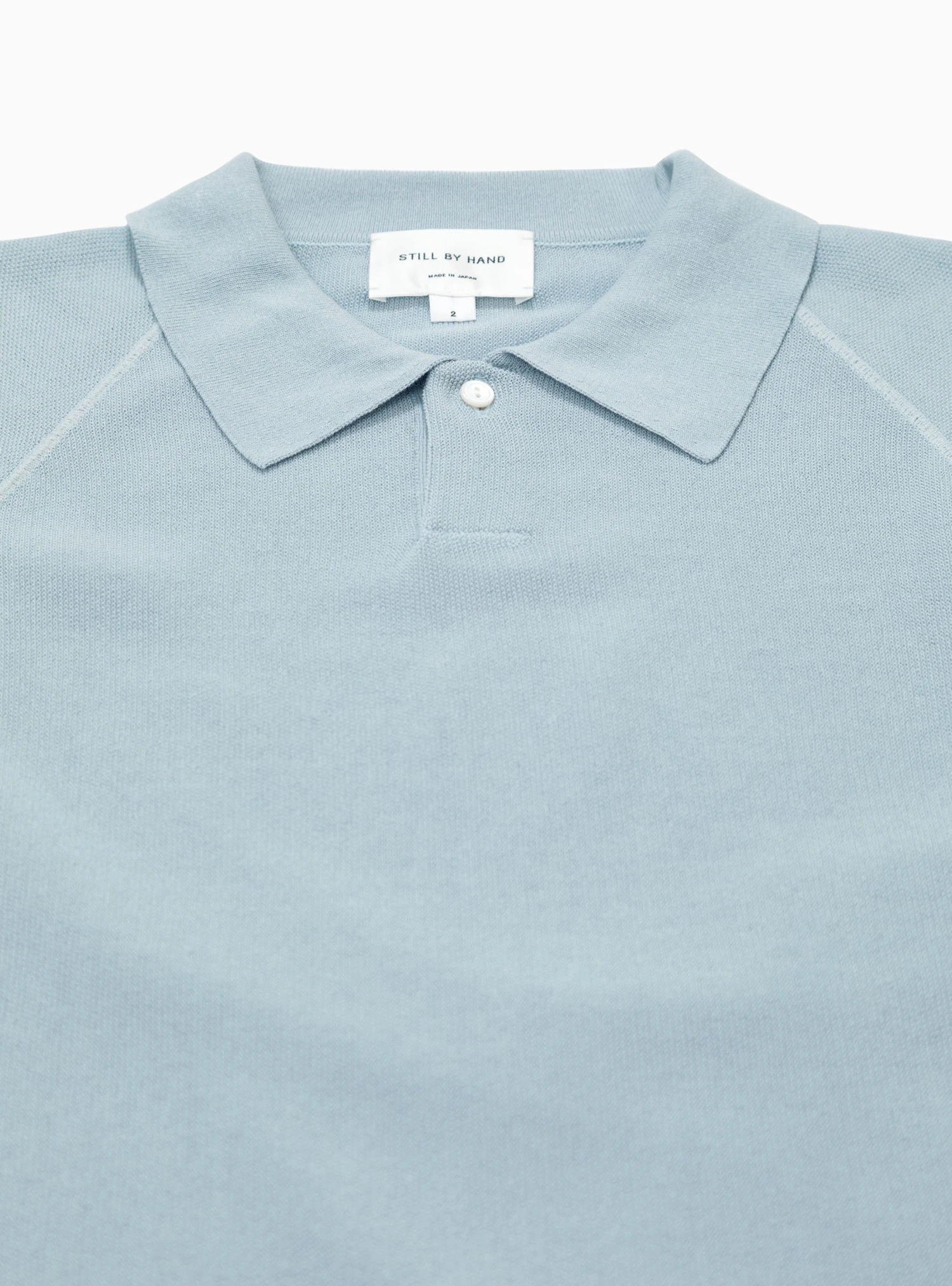 Known for their considered take on timeless wardrobe classics, the Silk-Blend Knit Polo by Japanese label Still by Hand comes in a muted sax blue cotton-silk woven blend with overlocked sleeve detailing and single mother of pearl collar closure.