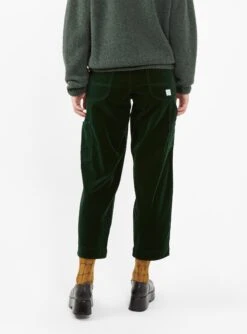 Inspired by traditional carpenter styles, these bottle-green Staple pants from Home Party’s AW23 collection feature a hammer loop and self-fabric knee patches. Made from velvet, they’re cut to a relaxed silhouette with tapered legs and cropped hems.