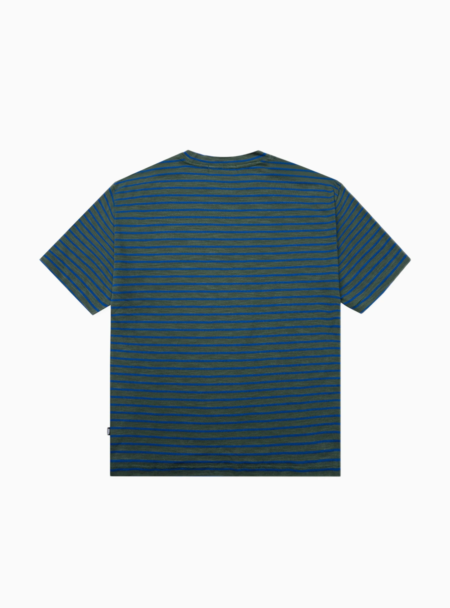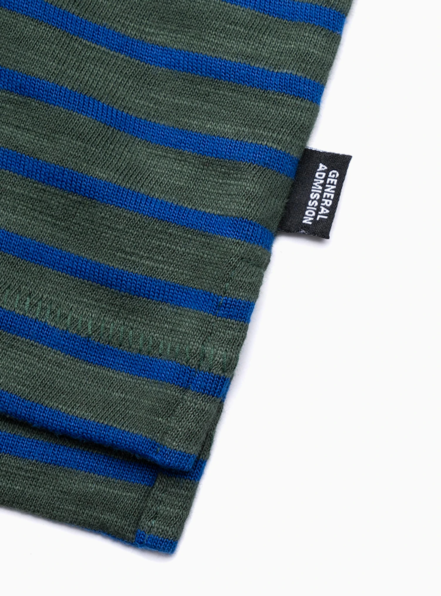 Made from cotton-blend slub jersey, which is then garment dyed and vintage washed, this green and blue striped T-shirt from General Admission is cut to an oversized silhouette with dropped shoulders and a crewneck.