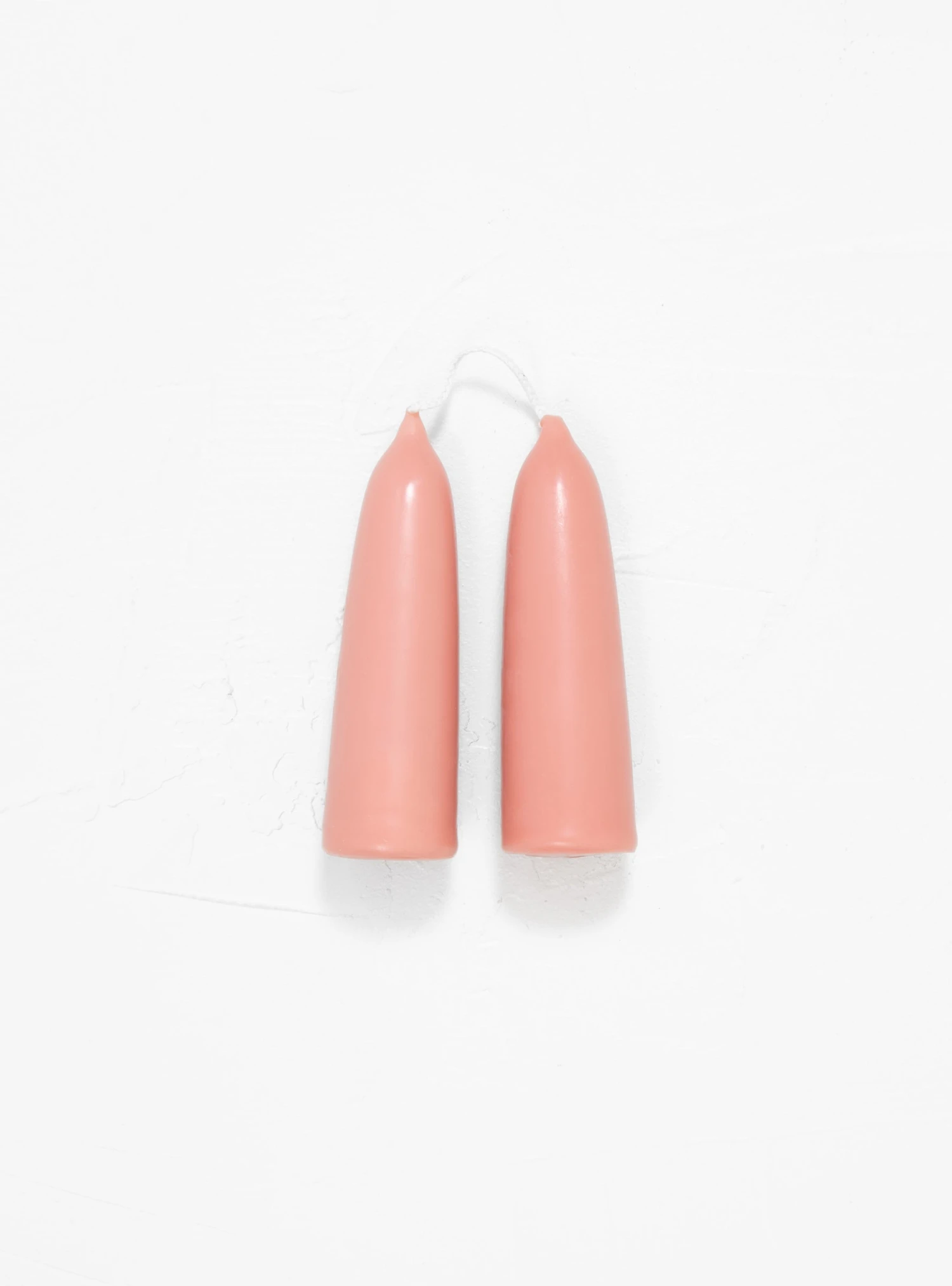 Wax Atelier employs traditional techniques to create this pair of madder root-pink Stubby candles, made in the UK from pure beeswax with cotton wicks.