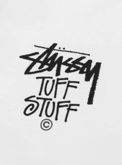 The Tuff Stuff Tee from Stüssy arrives in a white. Cut from a midweight, 6.05oz, cotton jersey, the tee falls to an oversized fit and is screen-printed with a Tuff Stuff logo across the back and at the left chest.