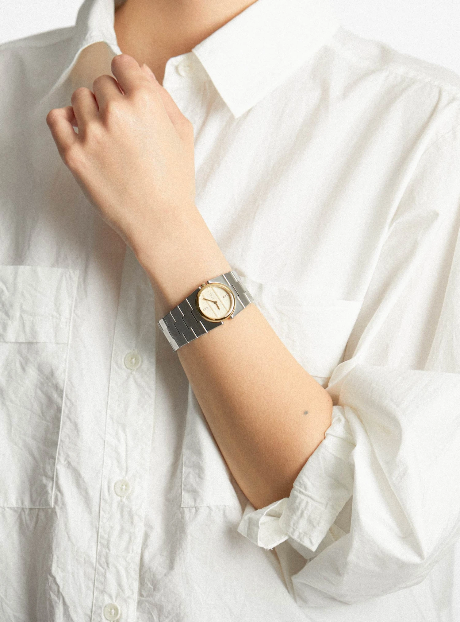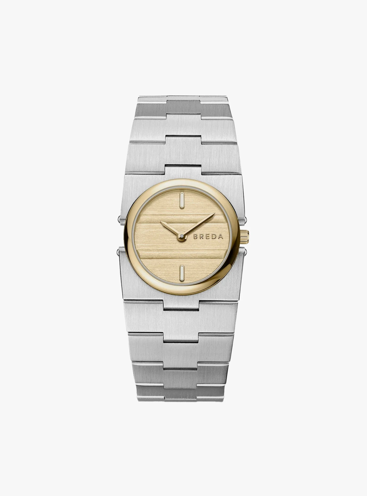The Sync watch from BREDA is inspired by the synchronicity of moments and the completion of circles. Housed in a gold and silver-coloured 25mm Stainless Steel Case, the 3ATM water-resistant watch has Japanese-made Miyota Quartz Movement.