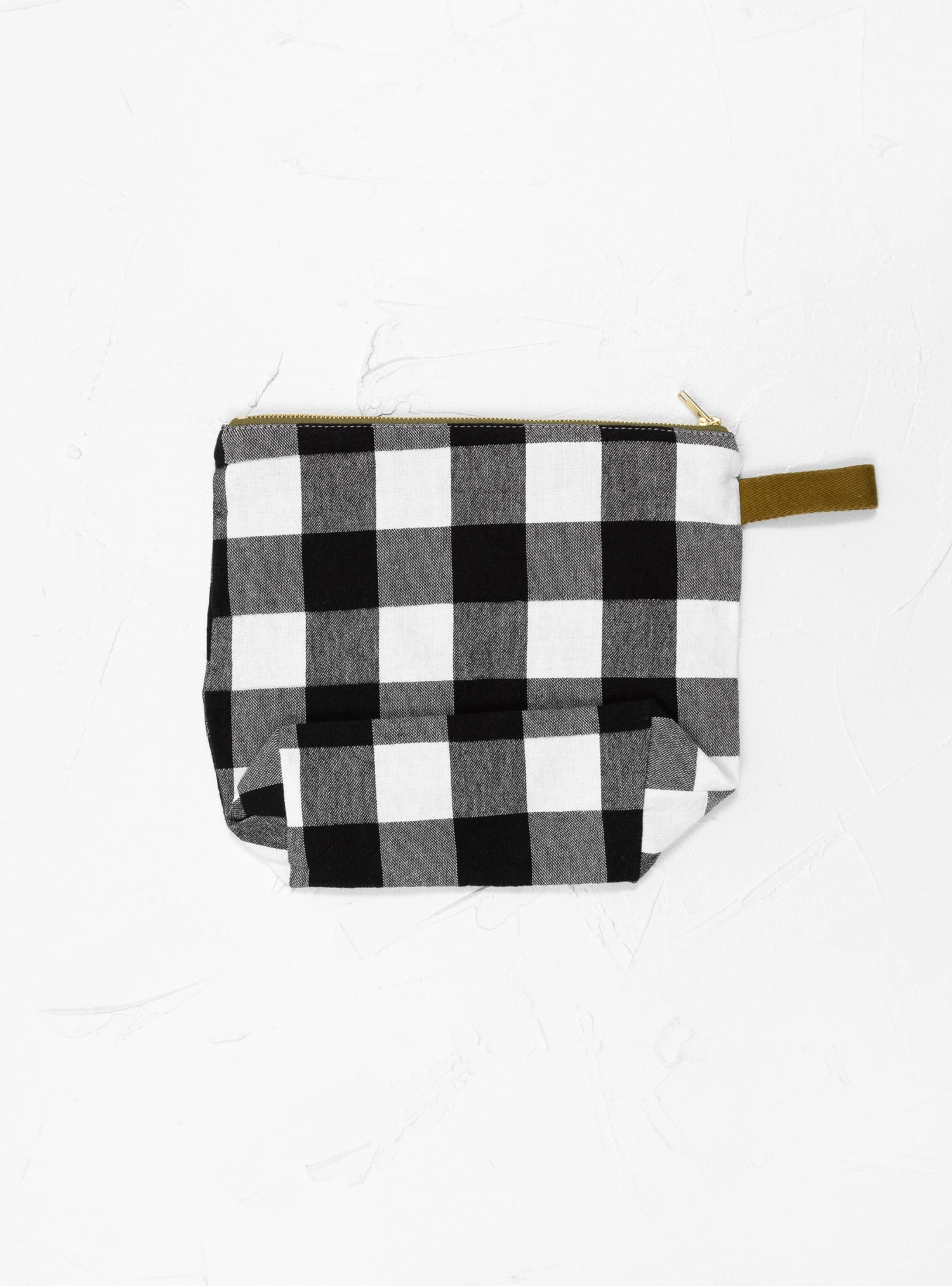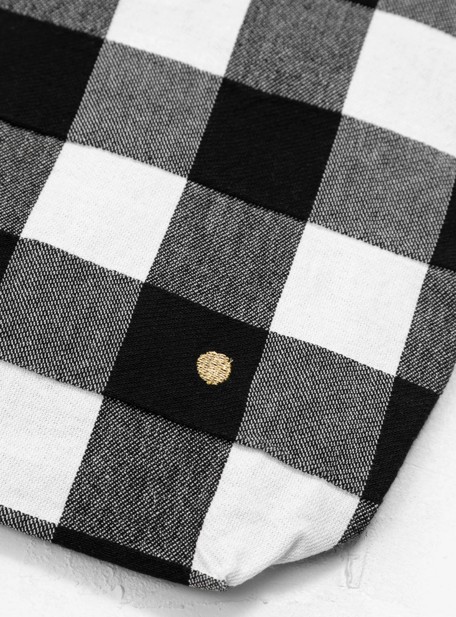 Made from cotton twill, this black and white Caviar Check GM toiletry bag from La Cerise Sur Le Gateau has a waterproof lining and a green webbing loop handle.