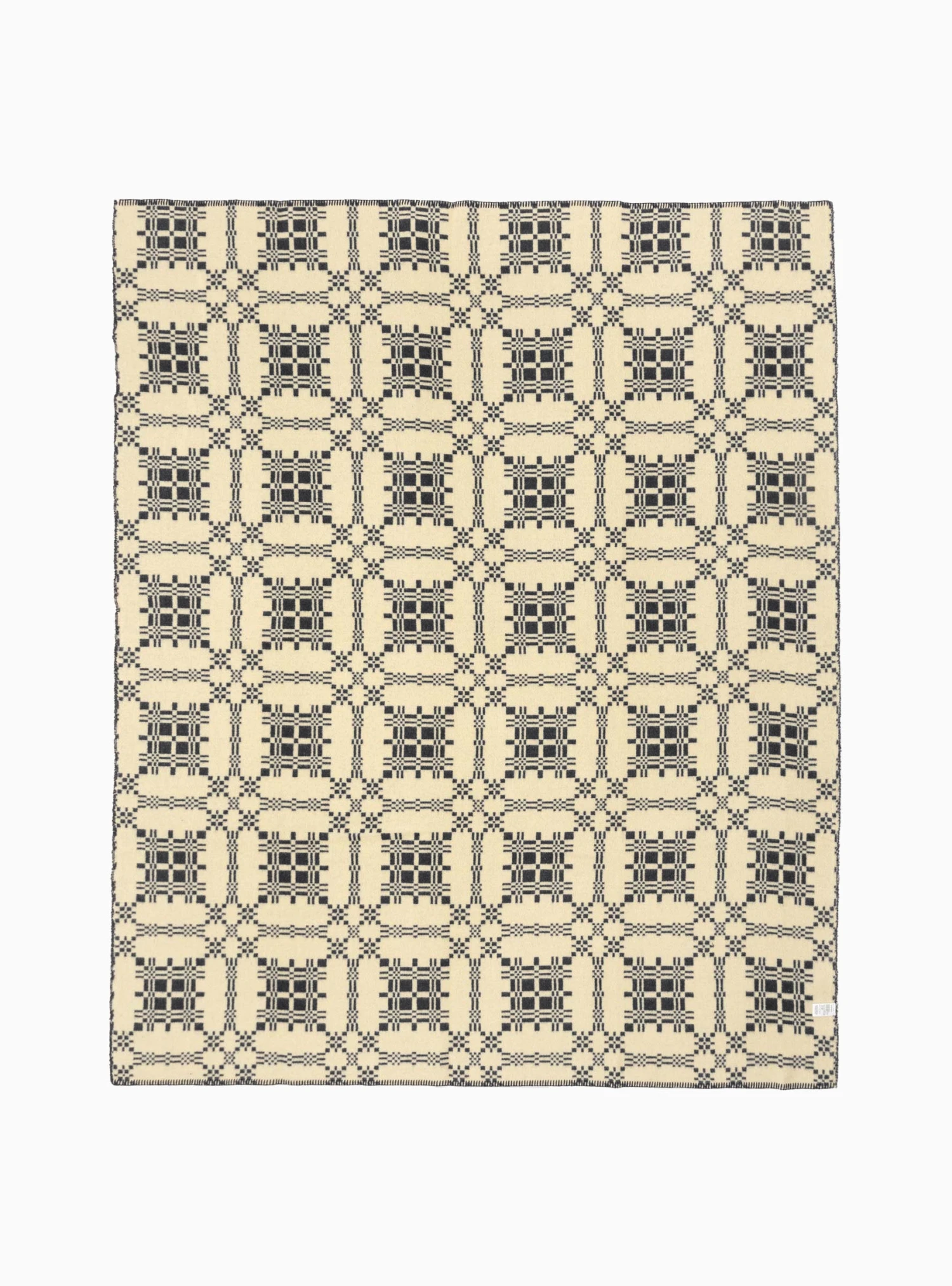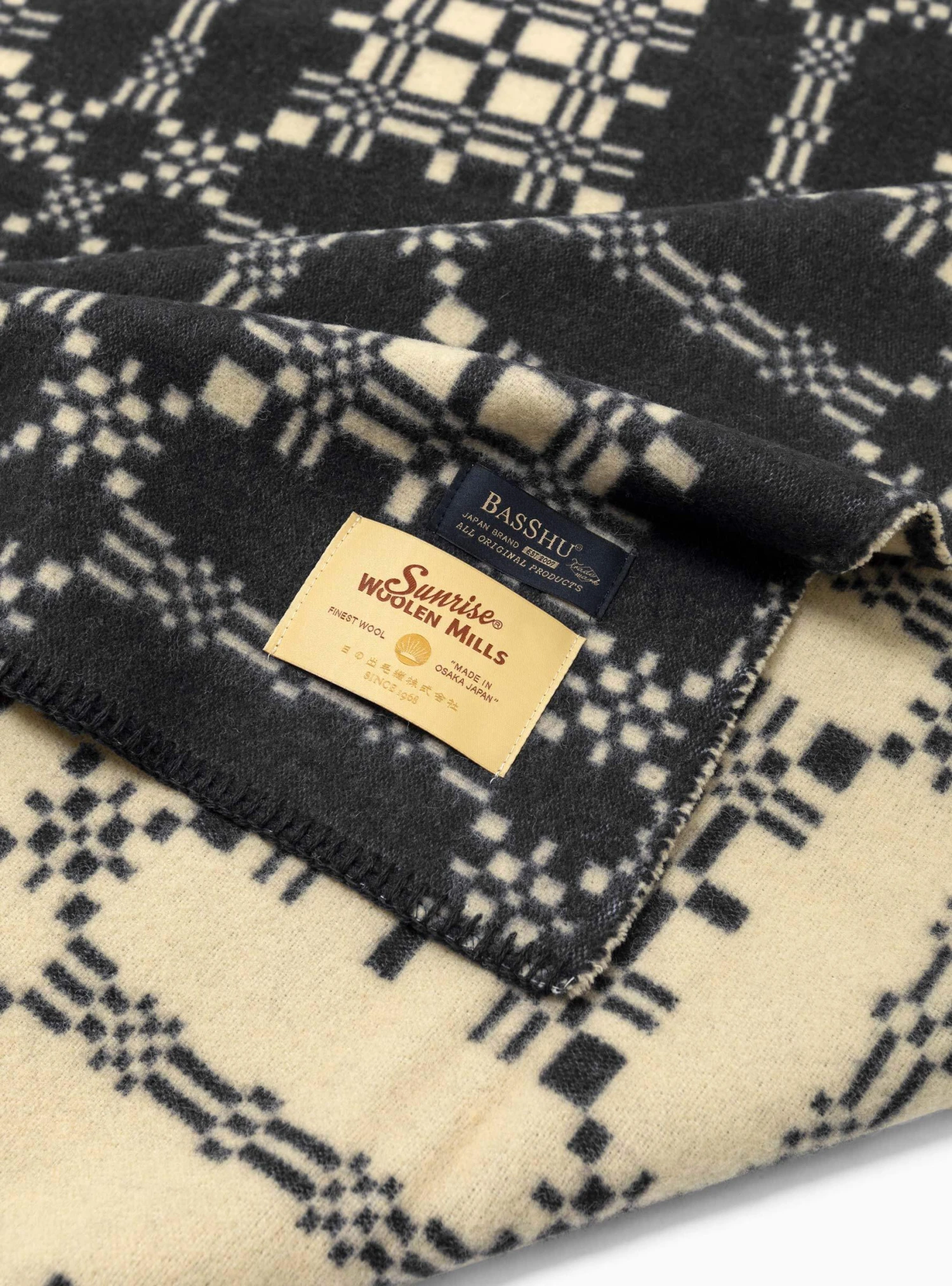BasShu blankets are inspired by the quality and comfort of those made in North America in the early 1800s. The warmth and comfort of these past creations are reflected in their very own designs, with this blanket coming in pure wool woven in Izumi Otsu, Japan, and detailed with a black and beige pattern.