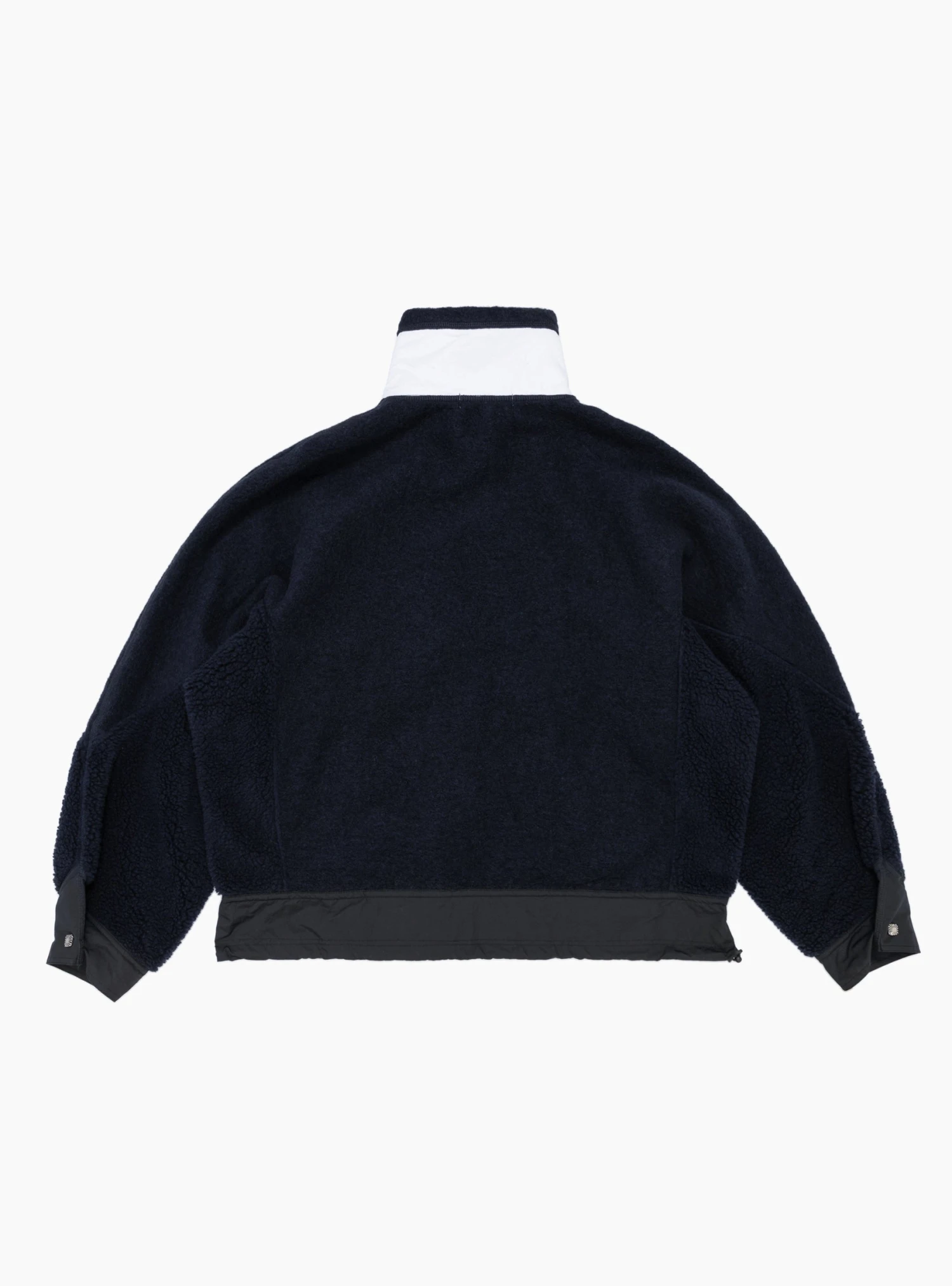 The Wool Jersey Blouson from TOGA VIRILIS’ A/W ’24 collection arrives in a navy. Made in Japan from a woollen blend, the zip up jersey falls to a relaxed fit. An assortment of zip and press-stud pockets with TOGA’s signature metal embellishments anchor the jacket. The jacket can be worn zipped-up, which will show a contrasting white funnel-neck collar, or for a more classic look, the collar can be folded down.