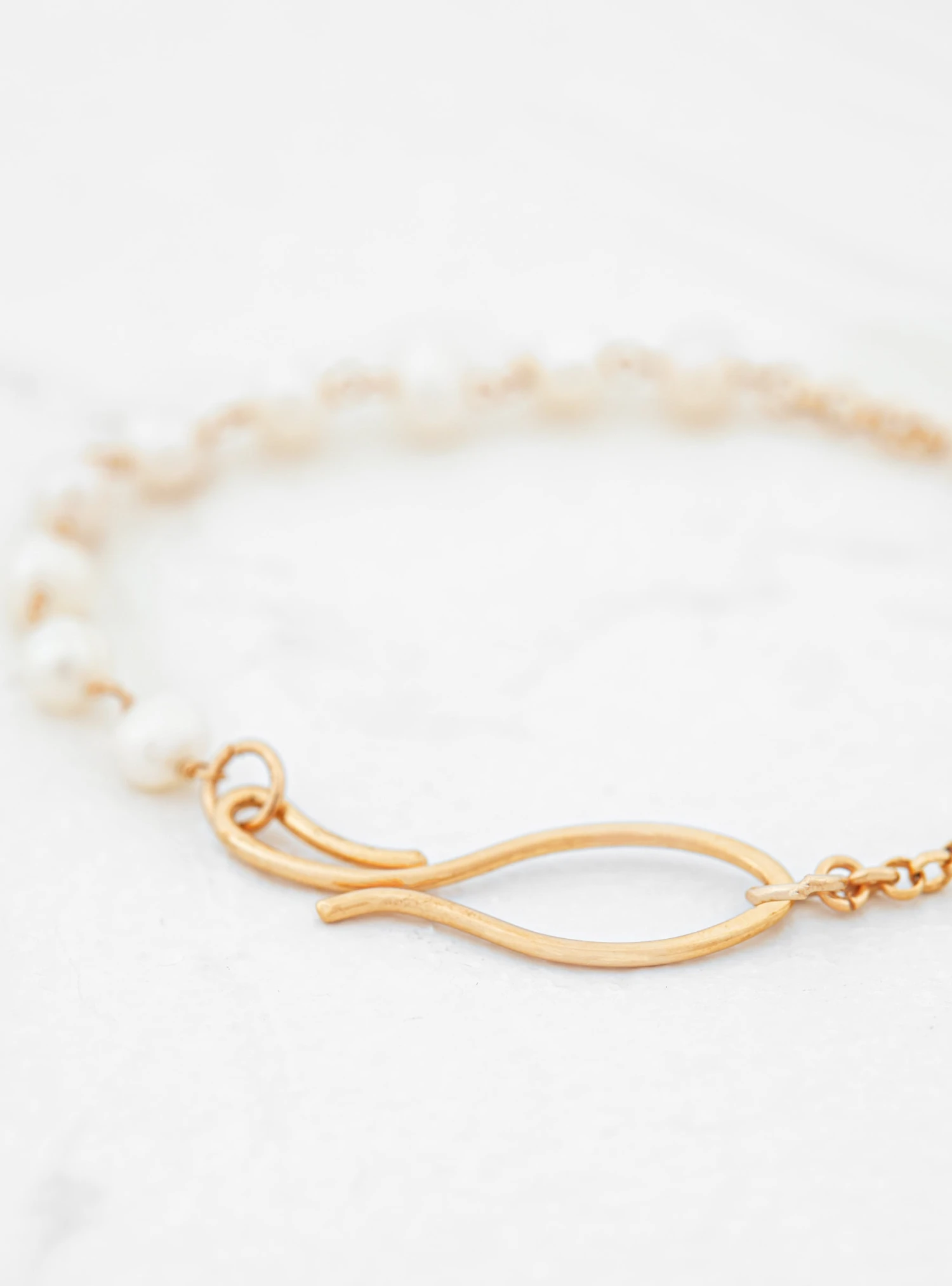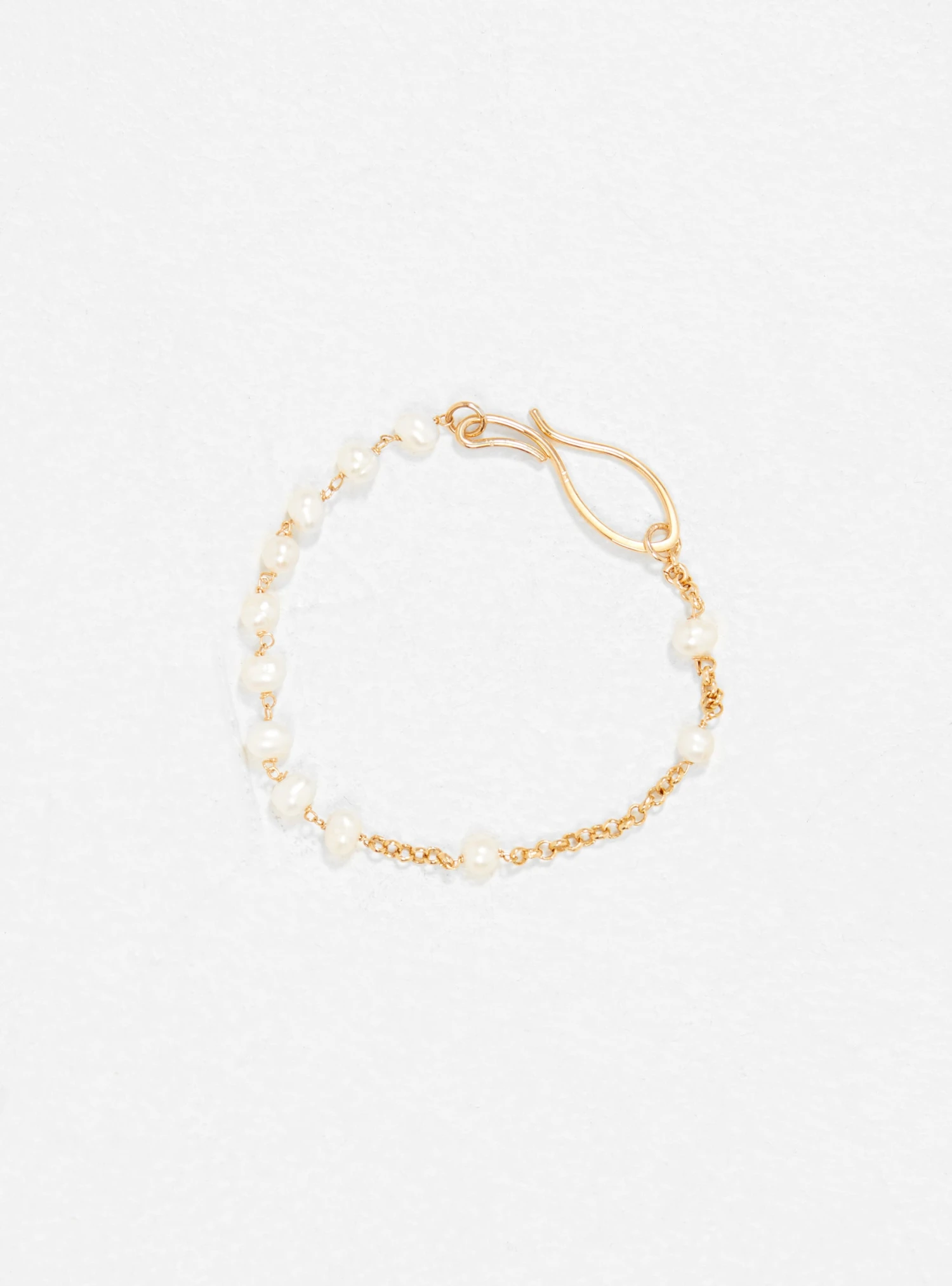 Designed in collaboration with footwear specialist Steve Mono, this bracelet from Helena Rohner is made by hand in Spain from gold-plated brass and punctuated with a series of pearls.